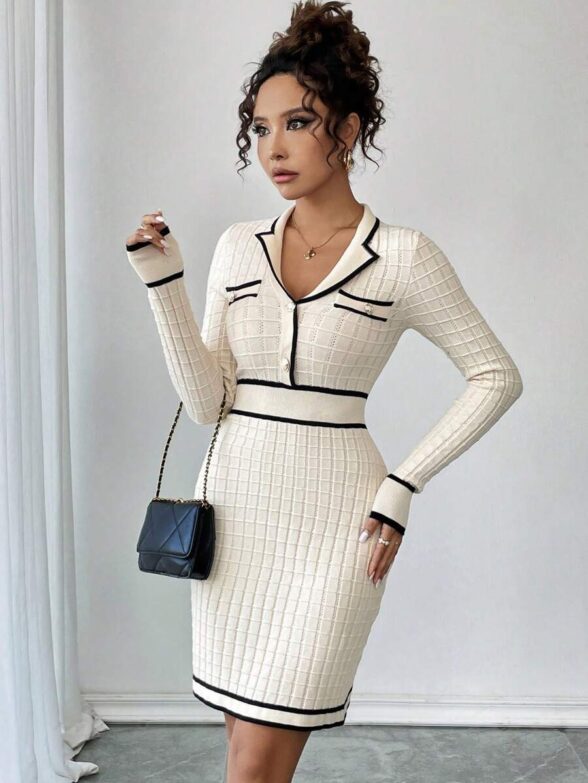 Rochie Scurta Tricotata Marsa Alba Cu Model In Relief