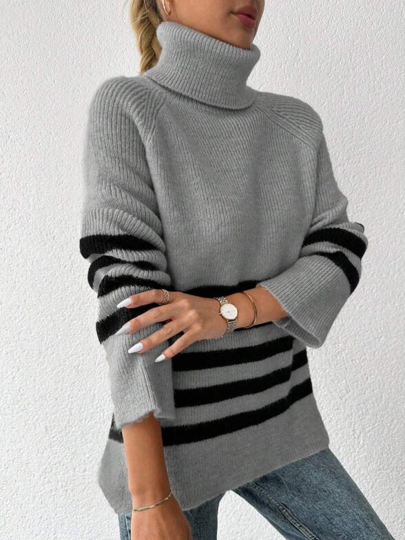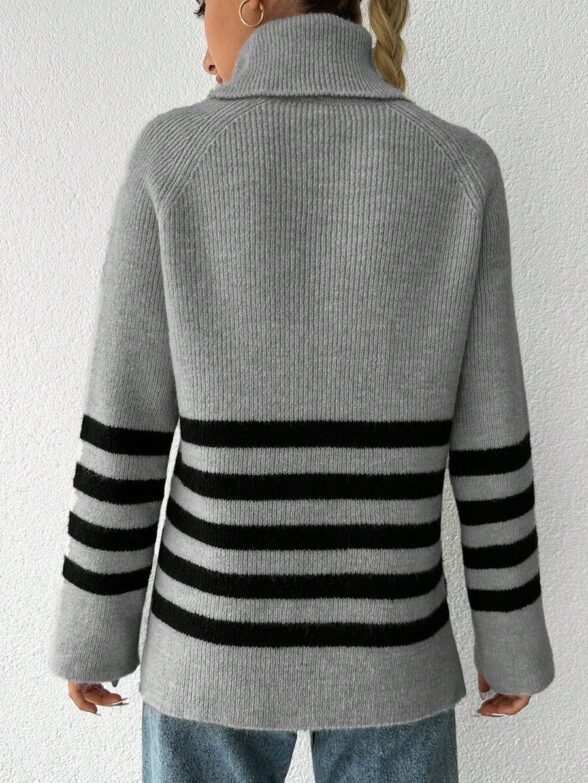 Pulover Tricotat Merra Gri cu Dungi Negre