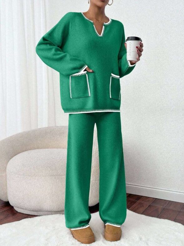 Compleu Tricotat cu Pantalon Ernesta Verde