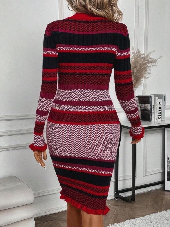 Rochie Scurta Tricotata Felicia cu Dungi Multicolore