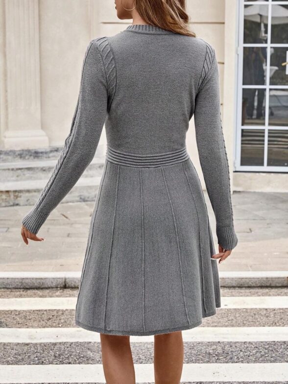 Rochie Midi Kina Gri Petrol cu Dungi in Relief