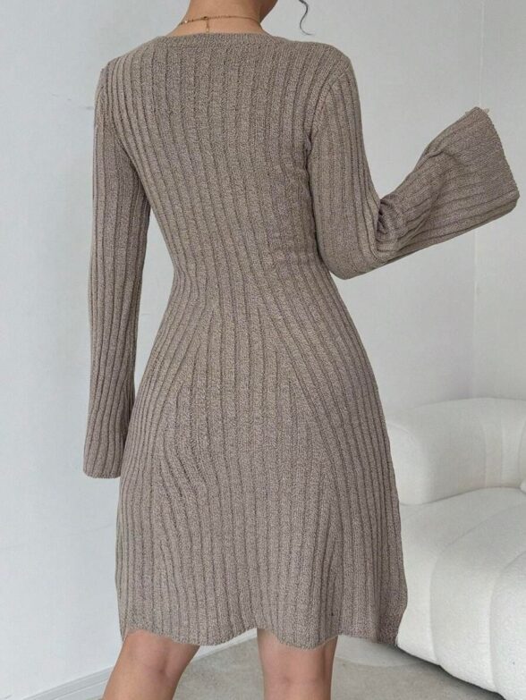 Rochie Scurta Tricotata Manuela Kaki