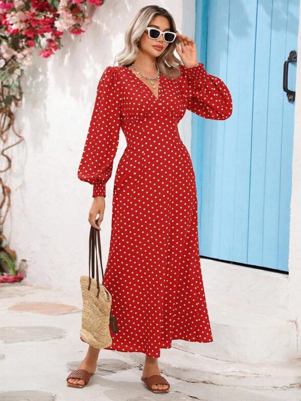 Rochie Lunga Diandra Rosie cu Buline Albe