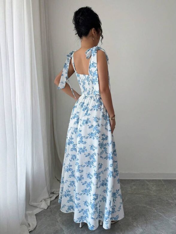 Rochie Lunga Hilda Alba cu Print Floral Albastru