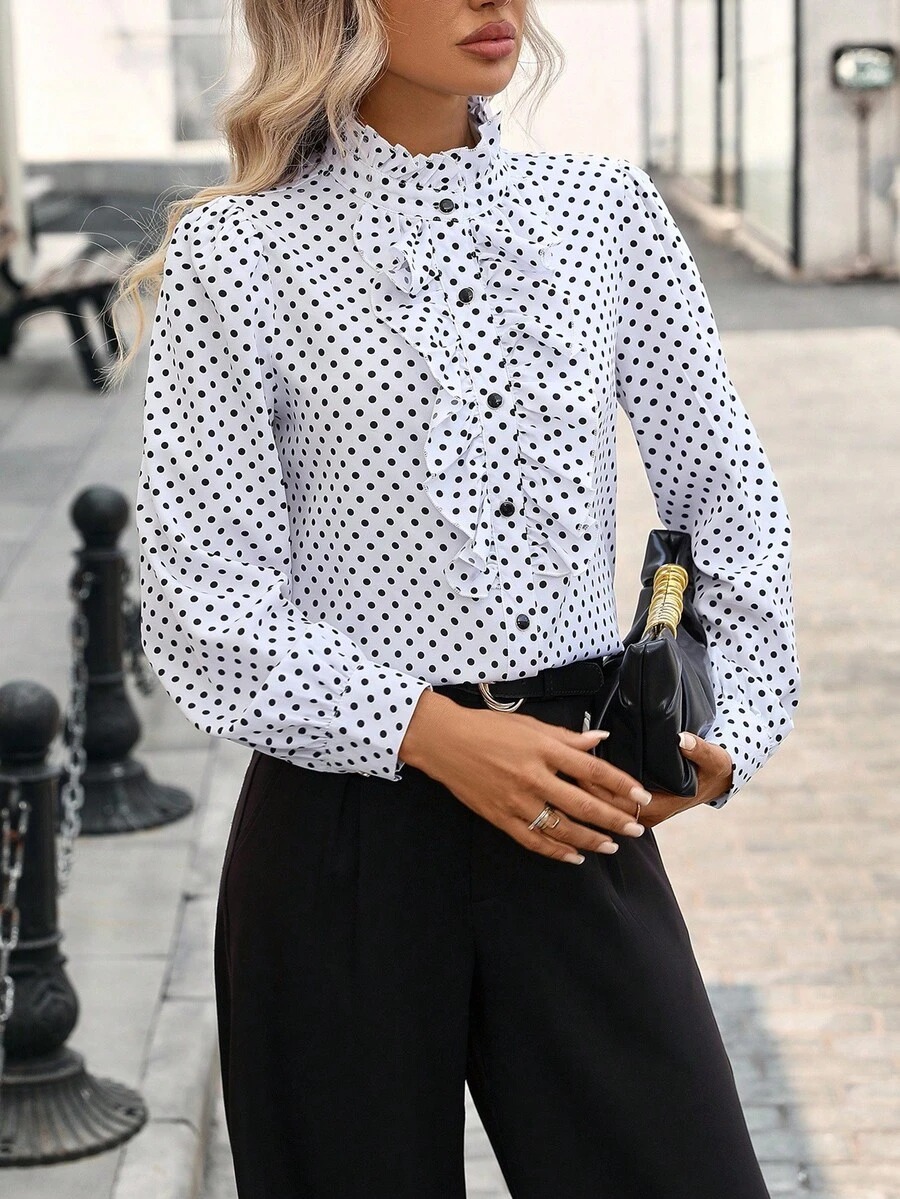 Bluza Dama Aceta Alba cu Buline Negre
