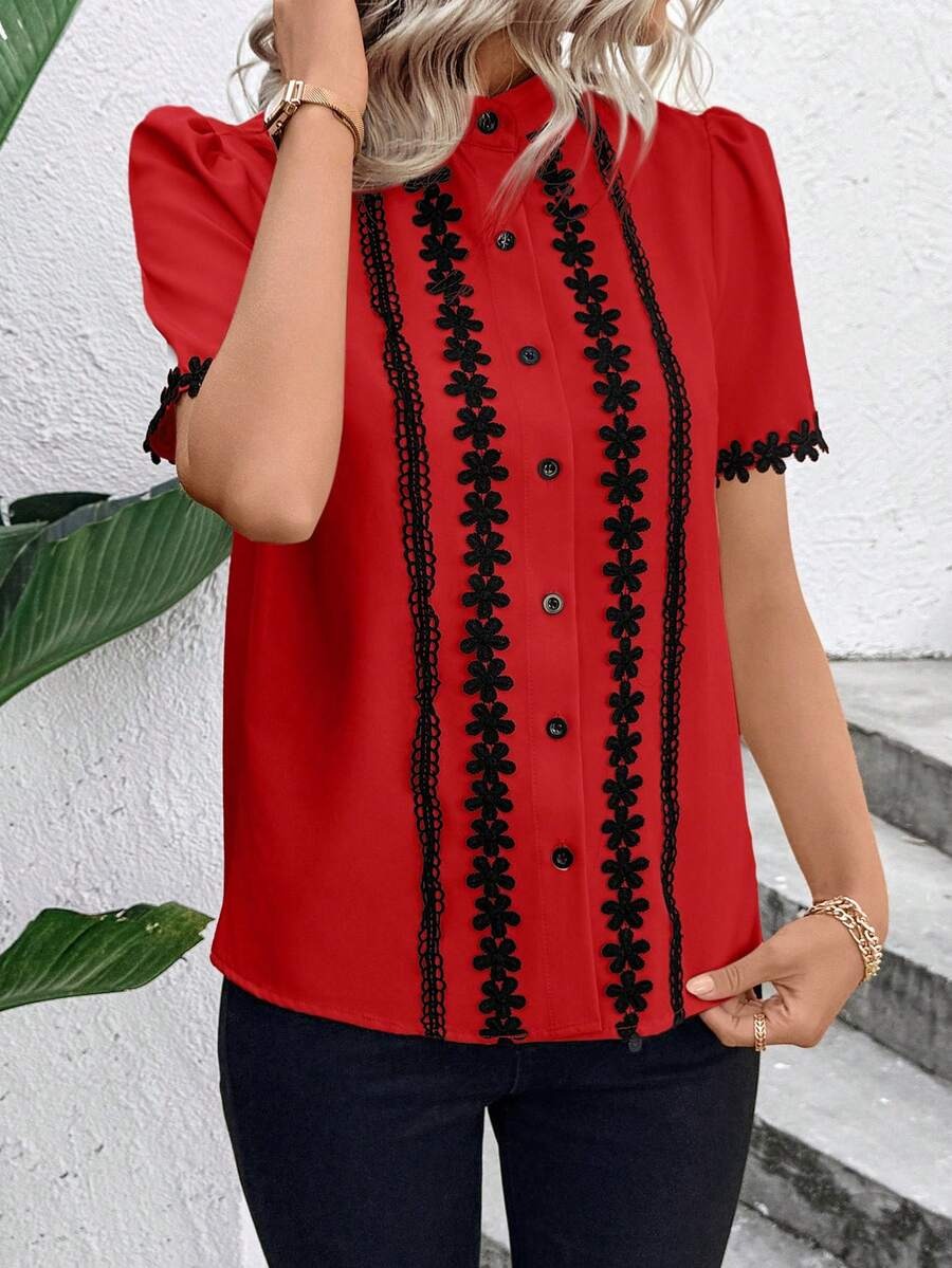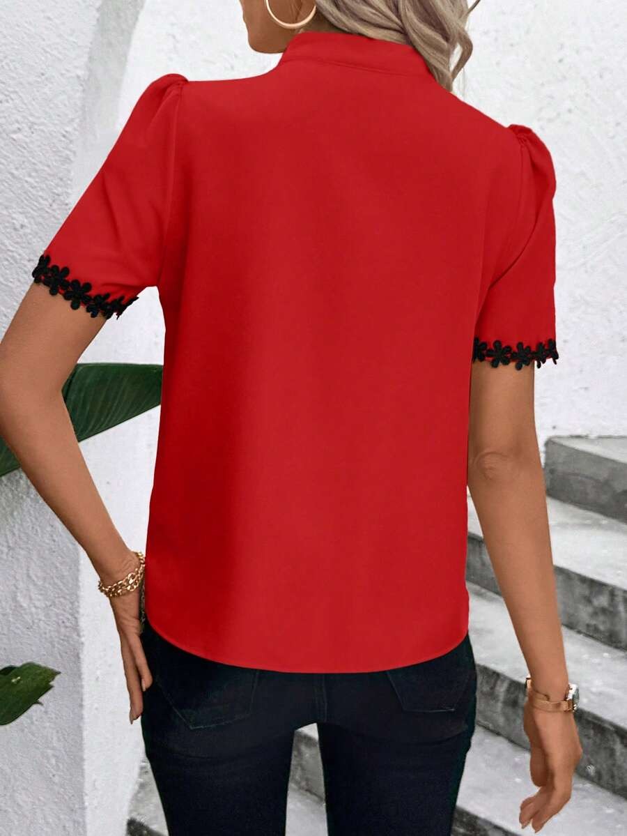 Bluza Dama Adela Rosie cu Broderie Neagra