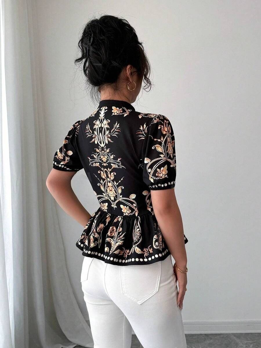 Bluza Dama Adina Neagra cu Print Bej