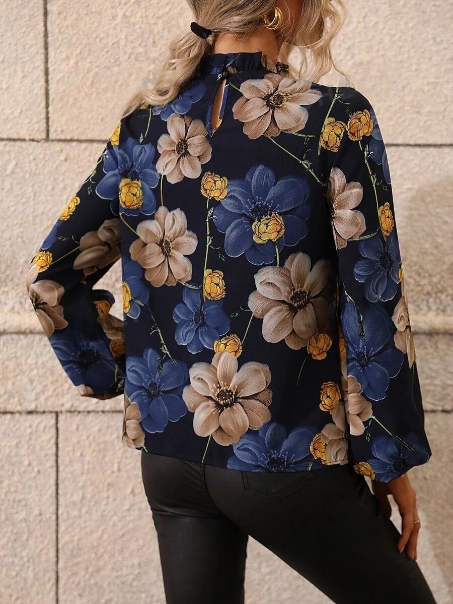 Bluza Dama Ariana Neagra cu Print Floral Albastru si Bej
