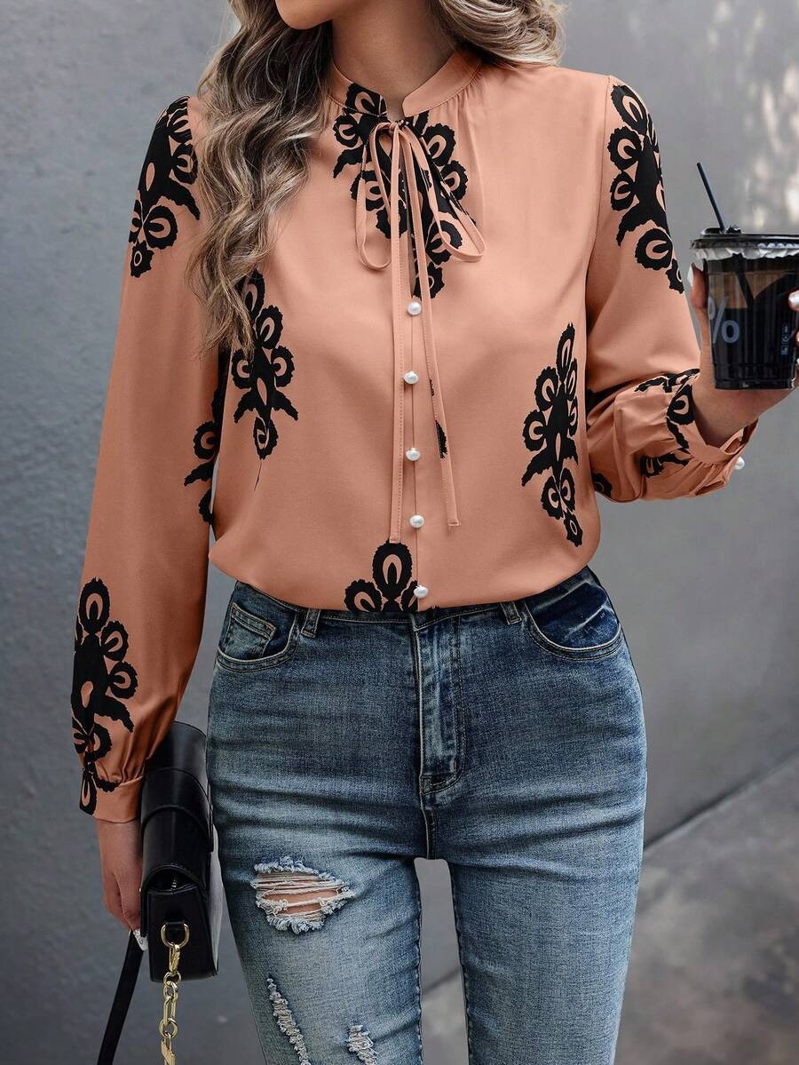 Bluza Dama Denisa Bej cu Print Negru