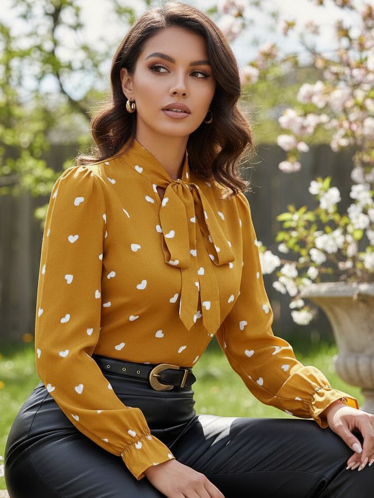 Bluza Dama Donna Galbena cu Inimioare Albe