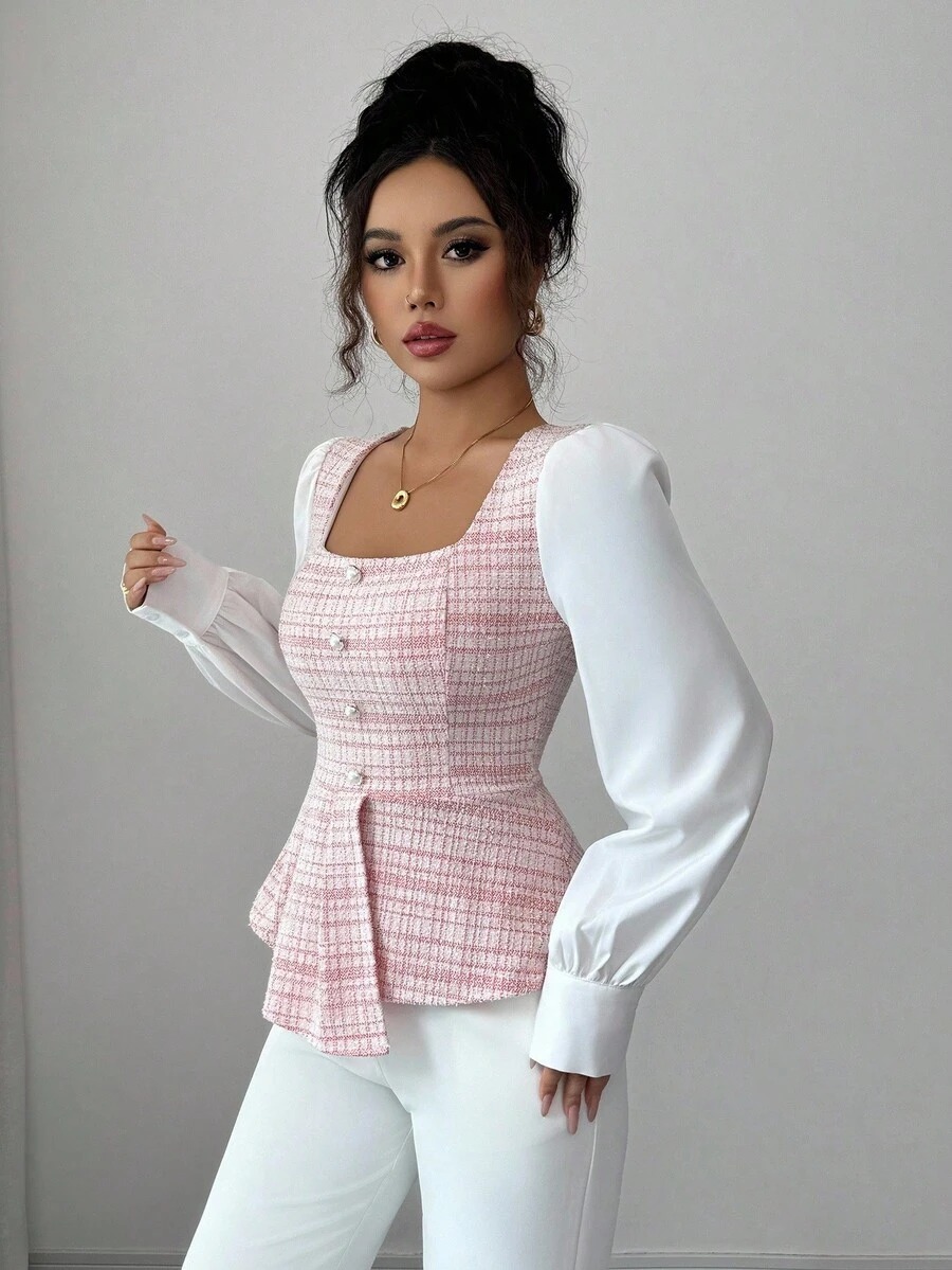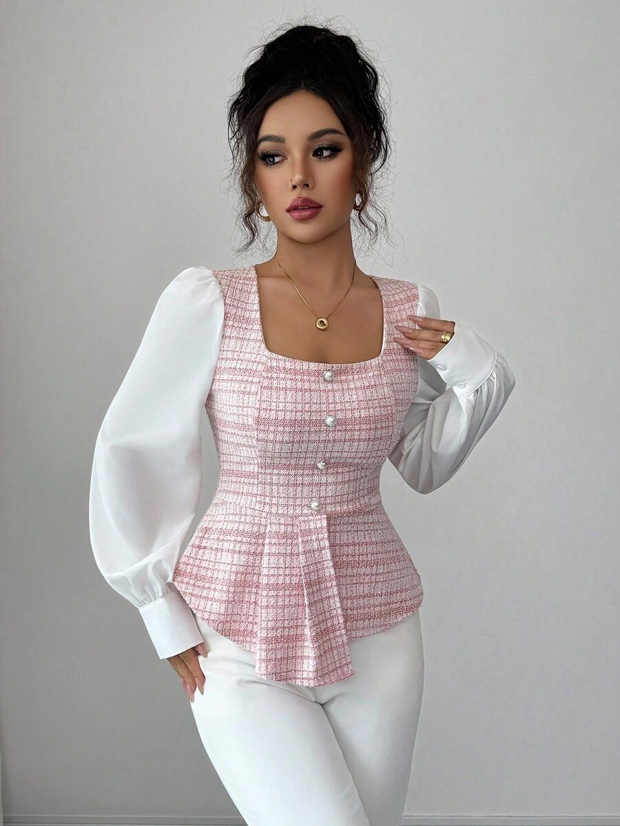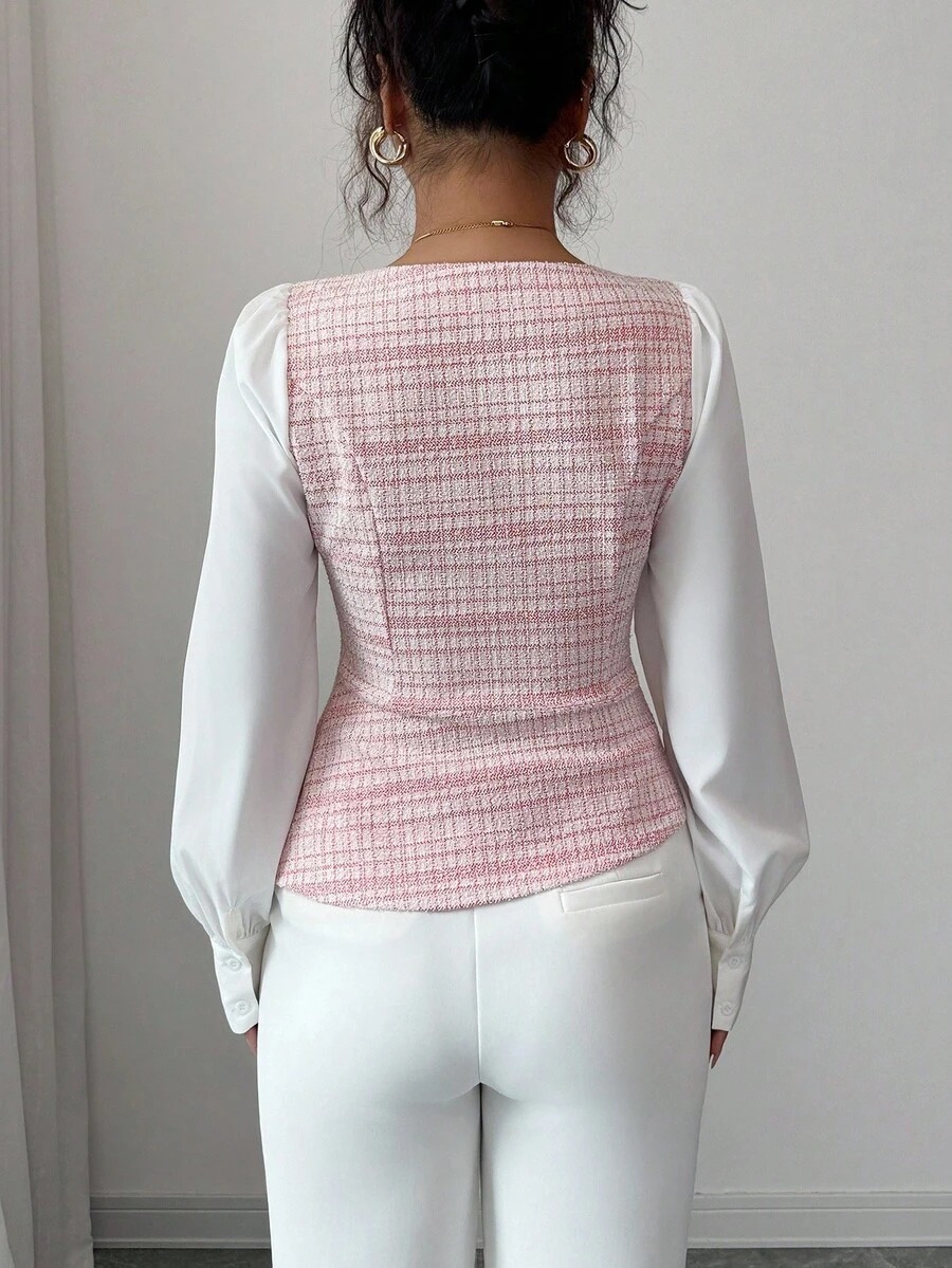 Bluza Dama Ilinca Roz cu Maneci Albe