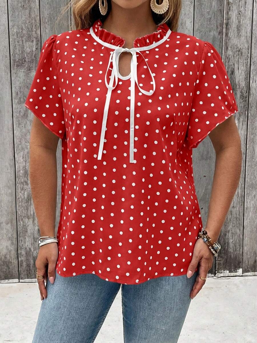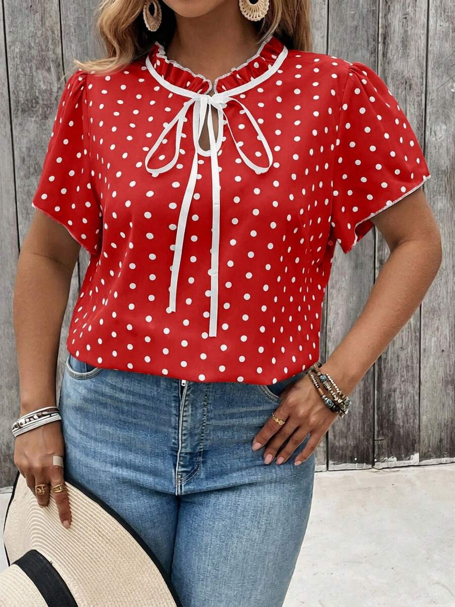 Bluza Dama Ionela Rosie cu Buline Albe – Marimi Mari