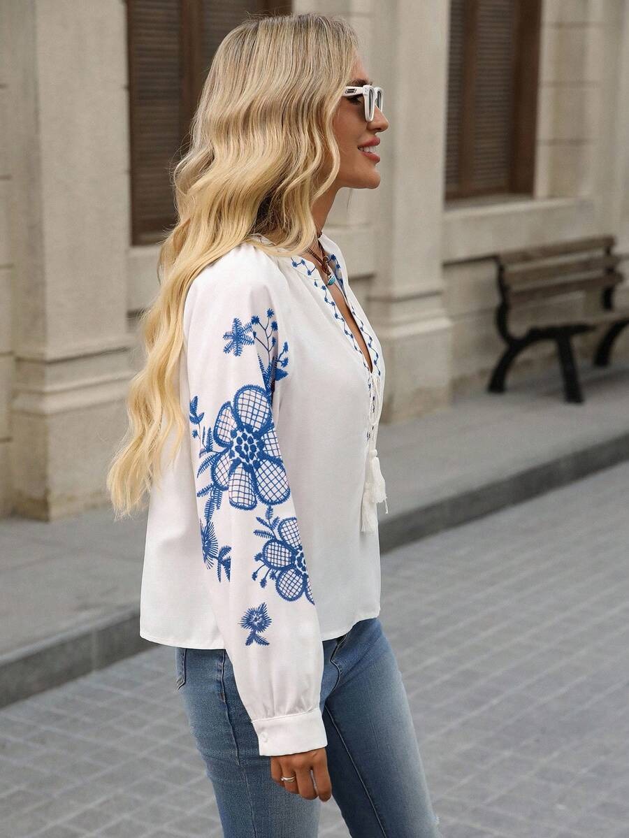 Bluza Dama Sammy Alba cu Print Floral Albastru