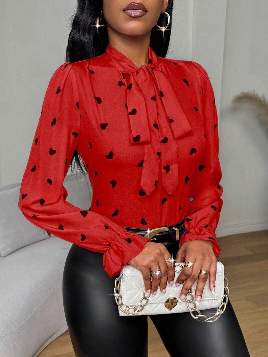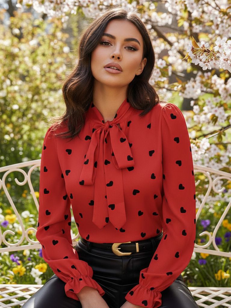 Bluza Dama Sandra Rosie cu Inimioare Negre