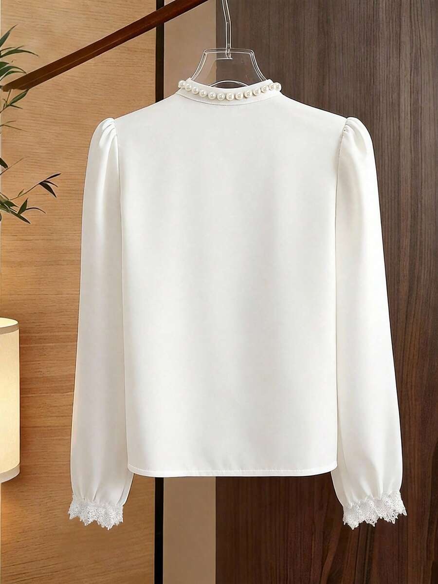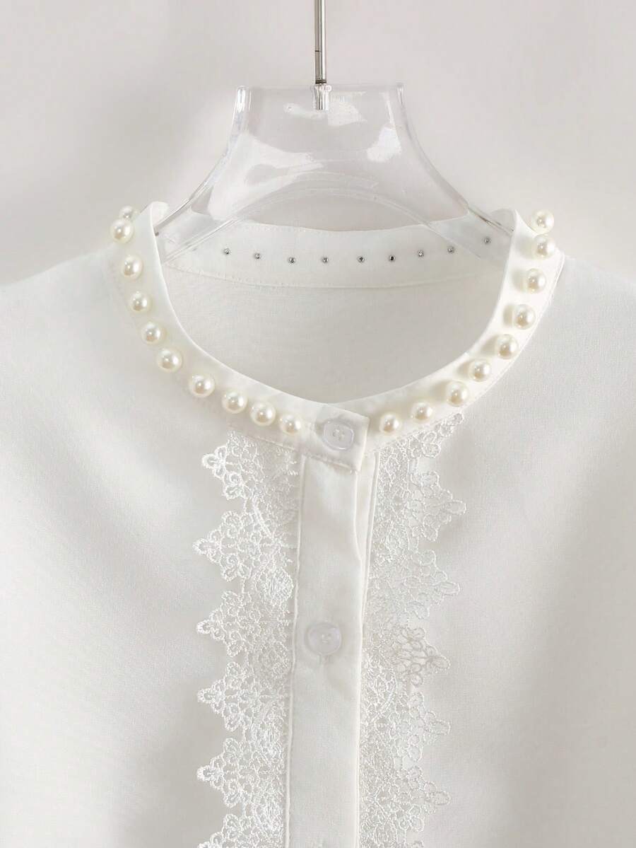 Bluza Dama Suria Alba cu Broderie si Perle