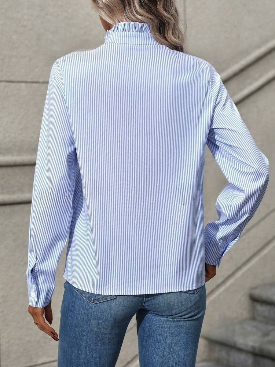 Camasa Dama Evelina cu Dungi Bleu si Albe