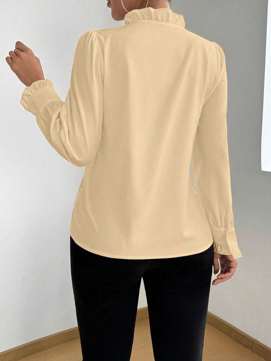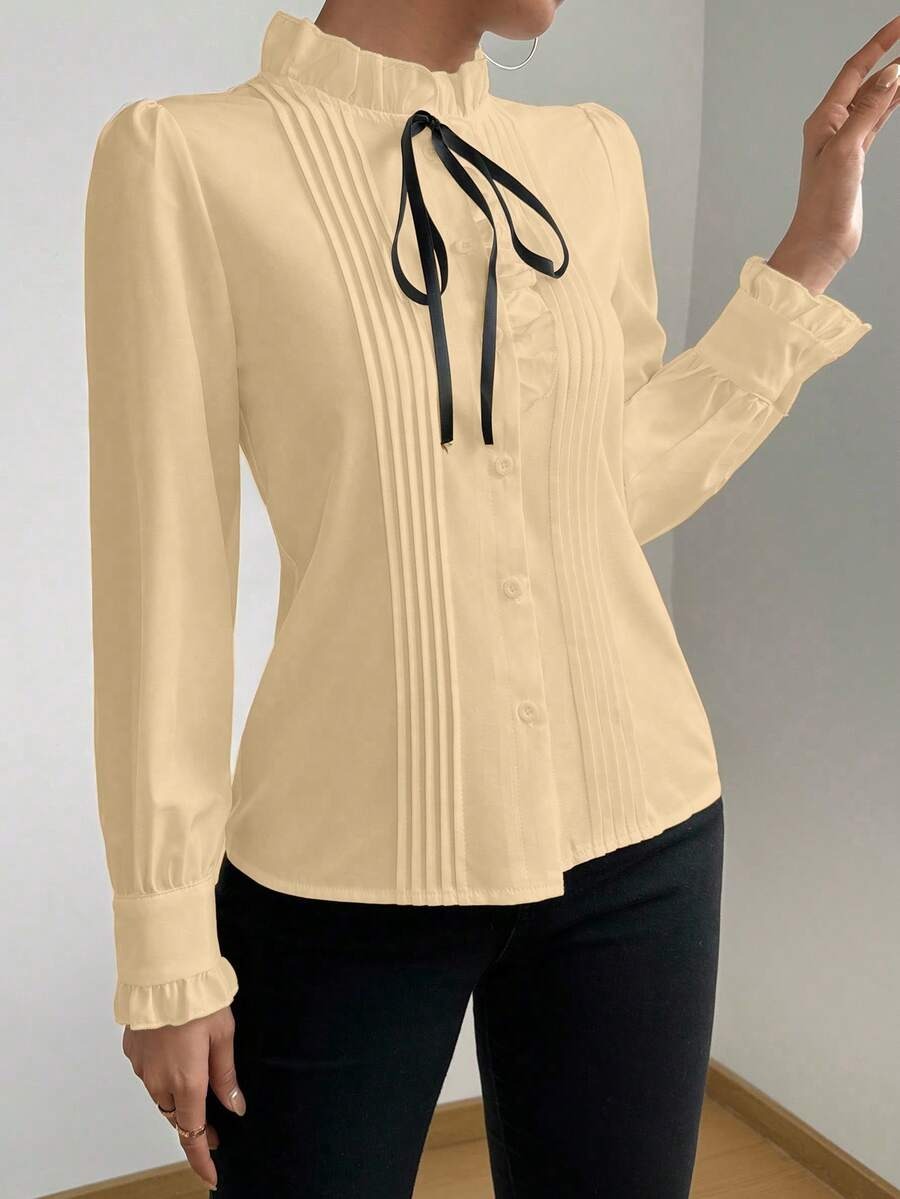 Cămașă Crem Elegantă cu Volănașe și Panglică – „Fiona”