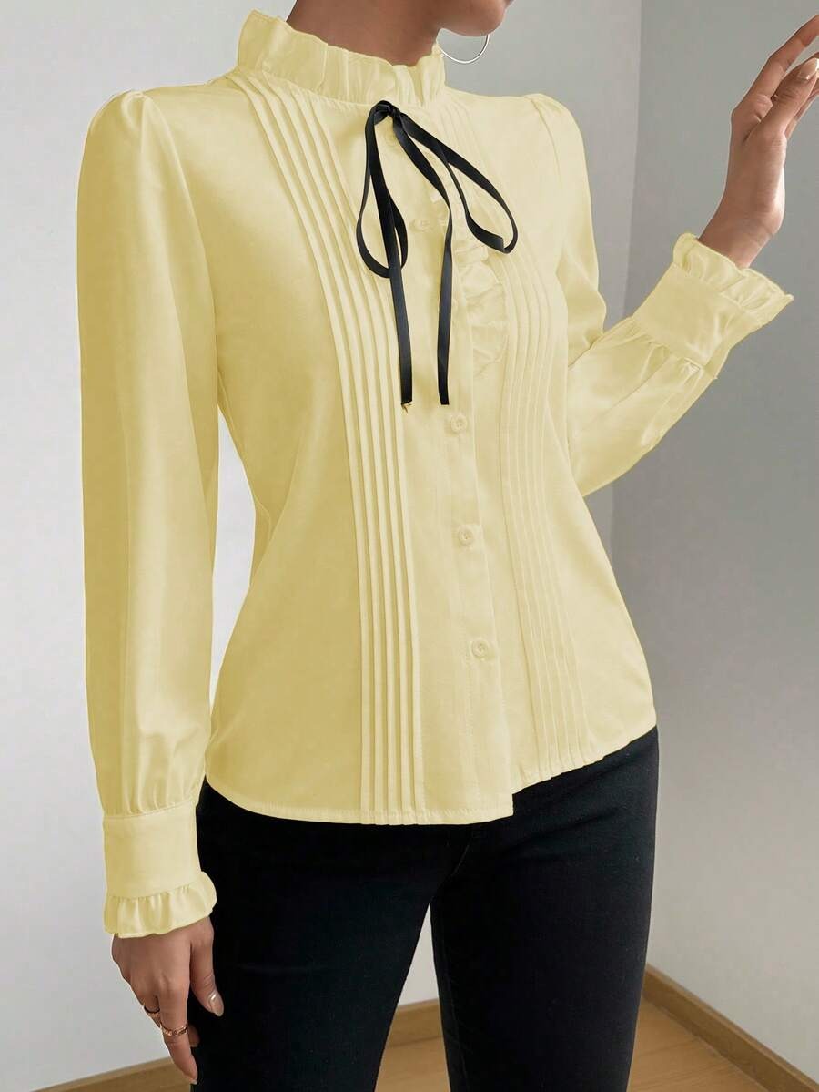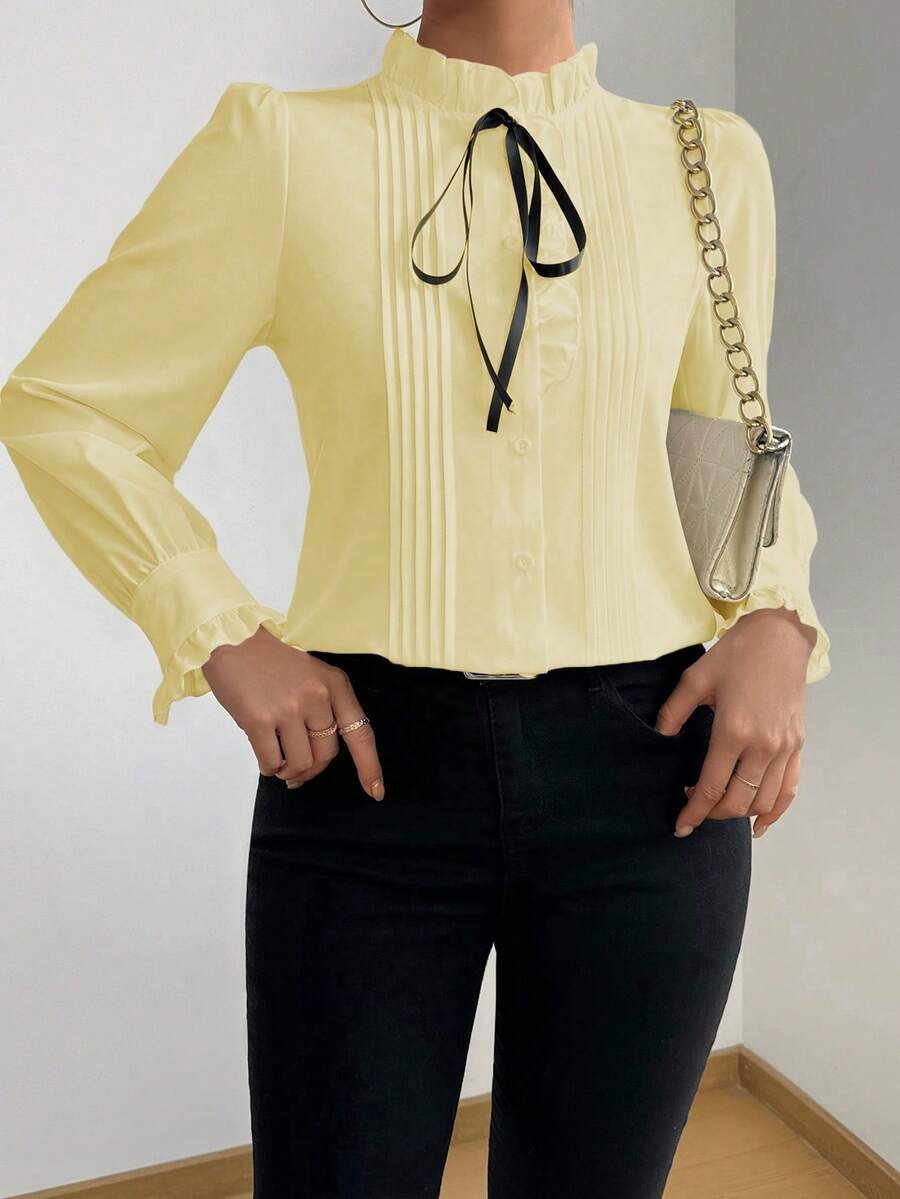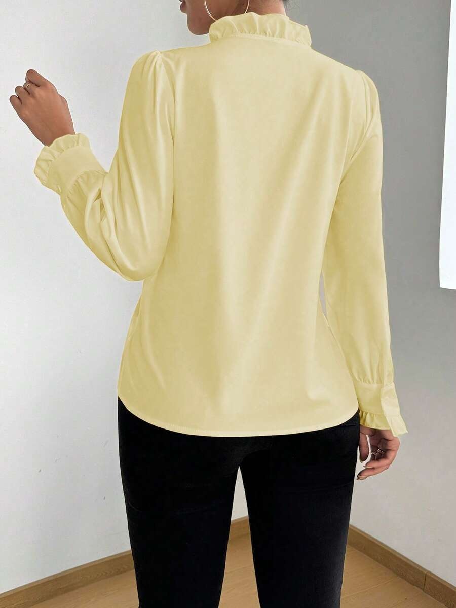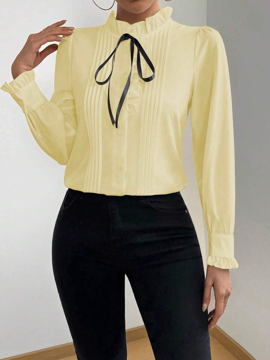 Cămașă Galbena Elegantă cu Volănașe și Panglică – „Fiona”