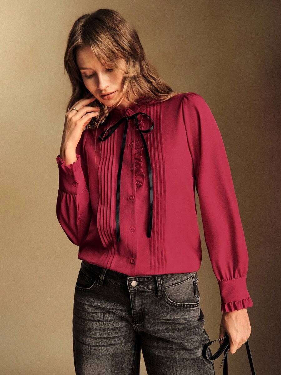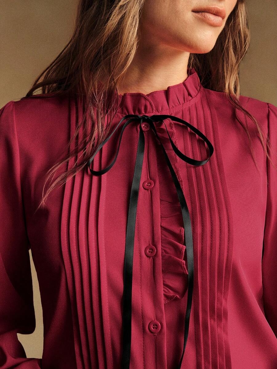 Cămașă Grena Elegantă cu Volănașe și Panglică – „Fiona”