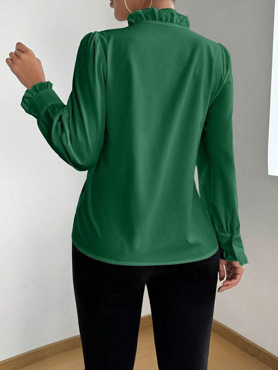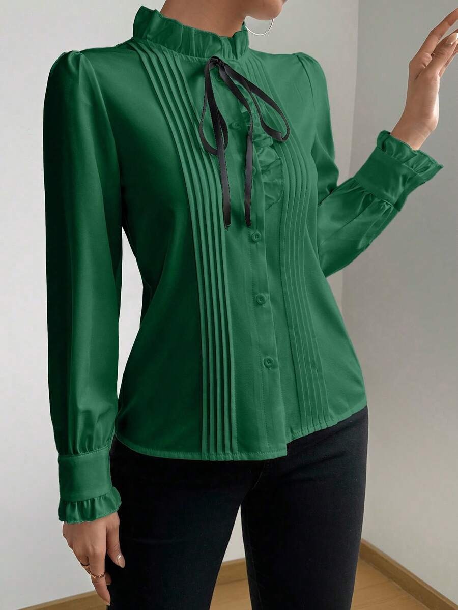 Cămașă Verde Elegantă cu Volănașe și Panglică – „Fiona”