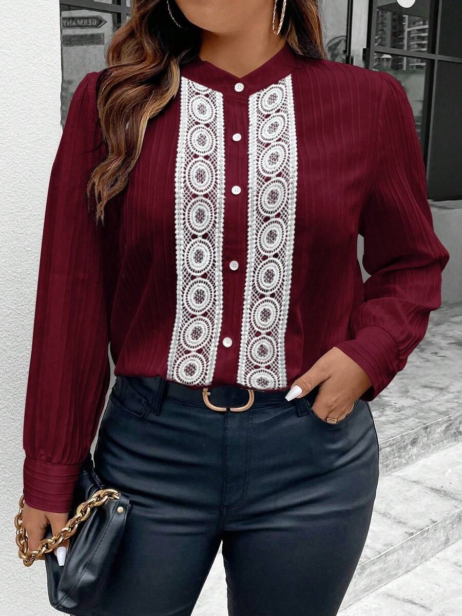 Camasa Dama Florita Grena cu Broderie Alba – Marimi Mari