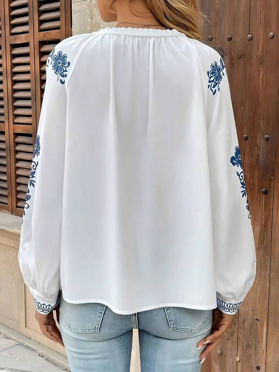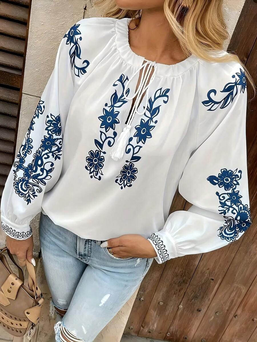 Camasa Dama Marisa Alba cu Print Albastru – Marimi Mari
