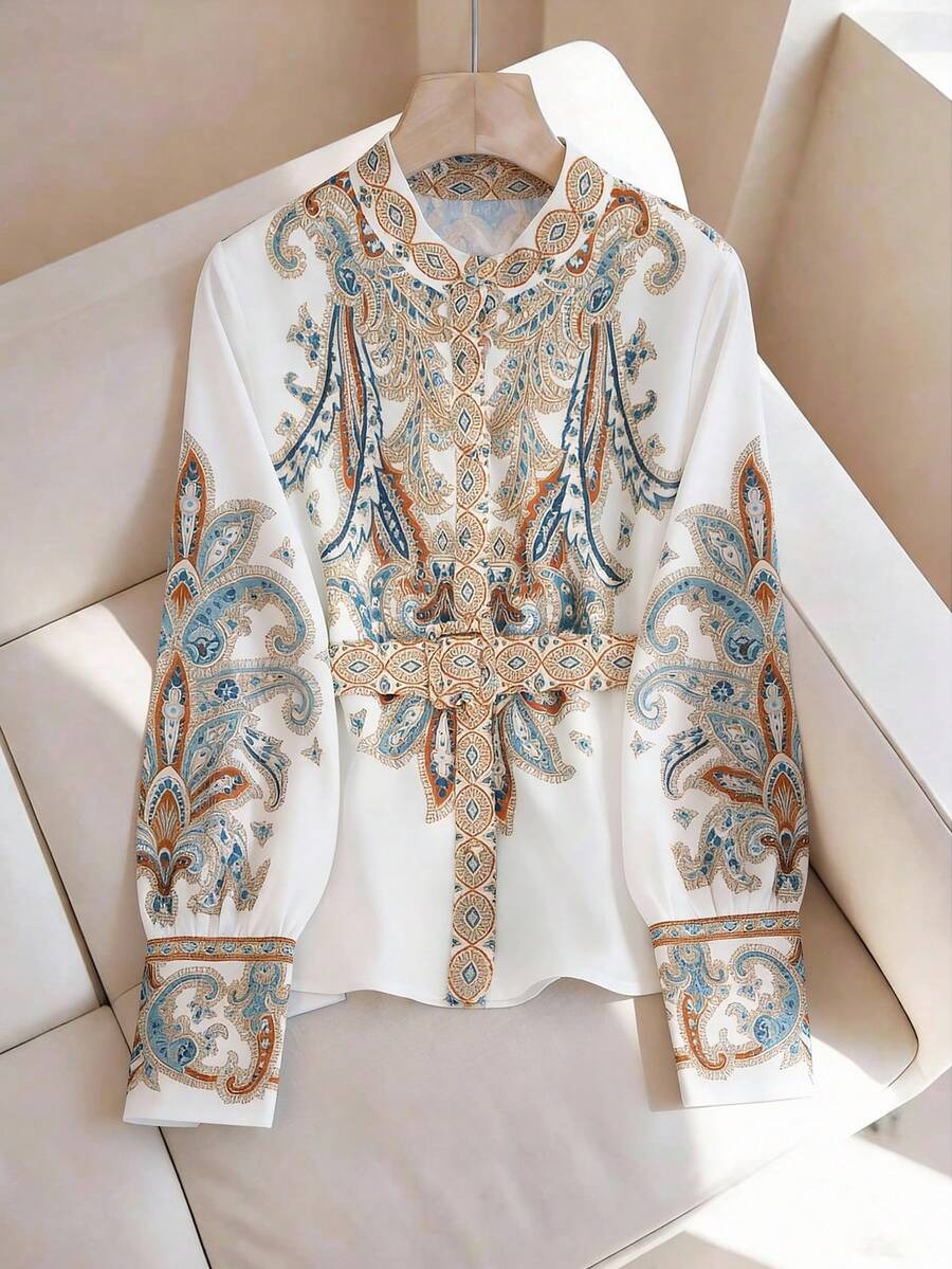 Camasa Dama Roxana Alba cu Print Multicolor