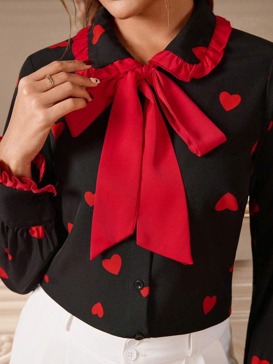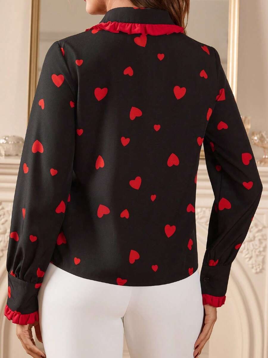 Camasa Dama Sissy Neagra cu Inimi Rosii