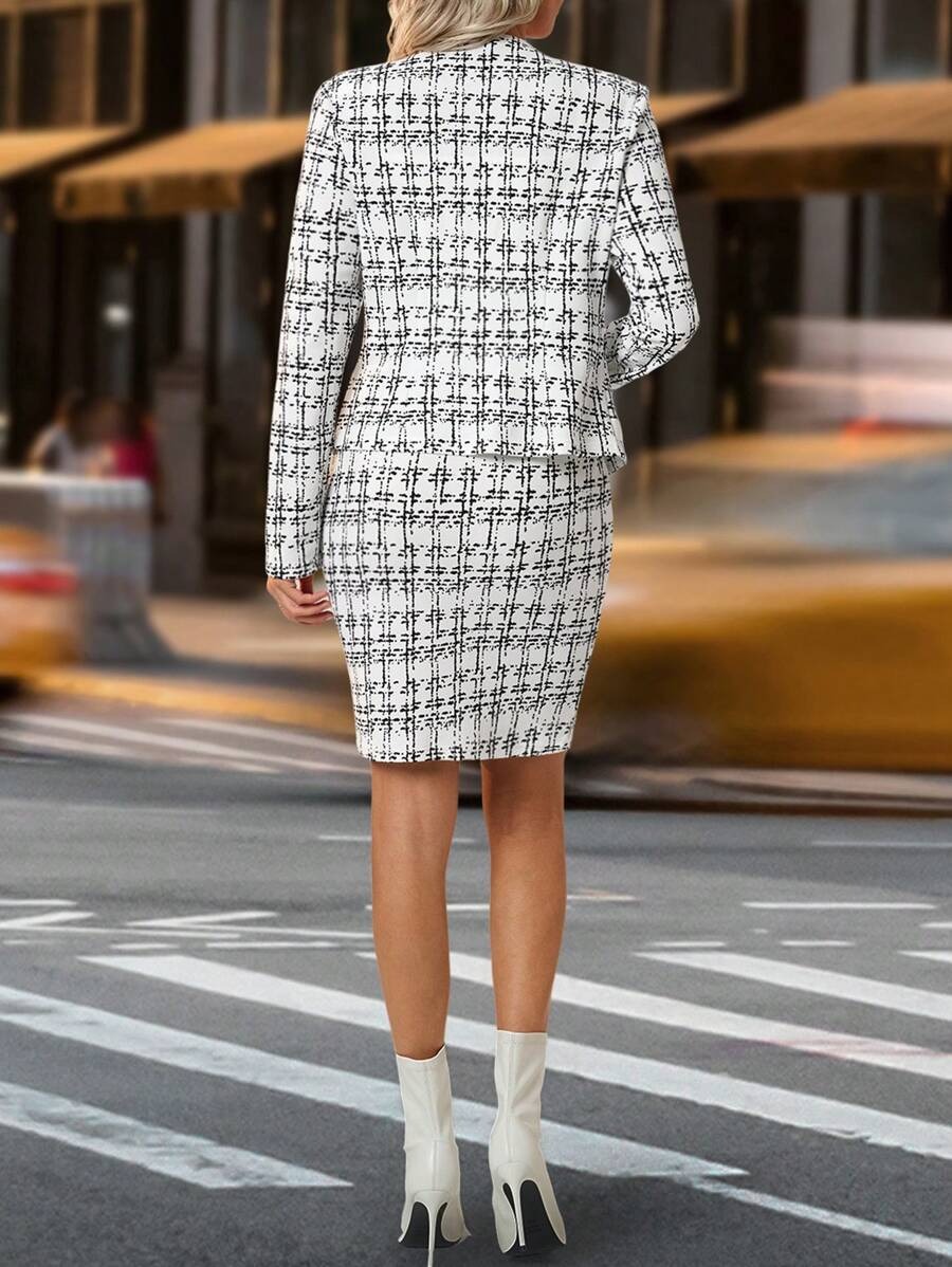 Compleu Aganippe Alb cu Print Negru format din Sacou si Fusta Scurta