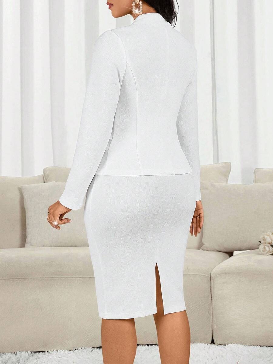 Compleu Betty Alb format din Sacou si Fusta Scurta