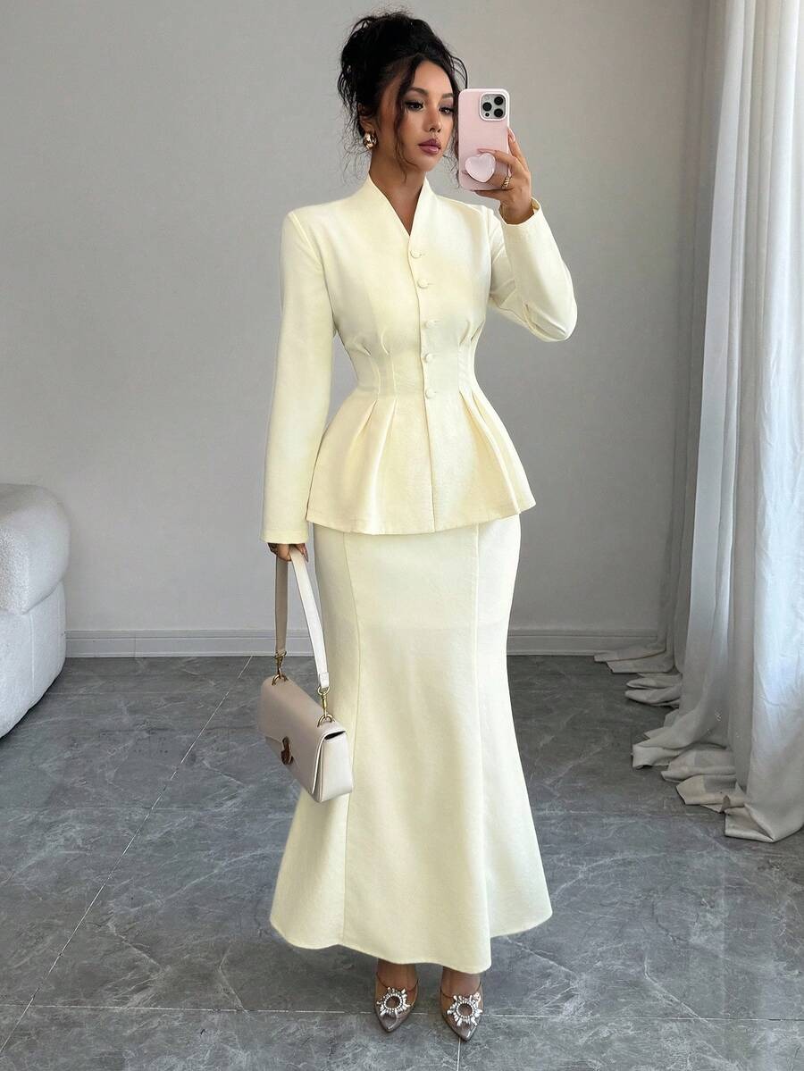 Compleu cu Fusta Lunga Jolie Crem