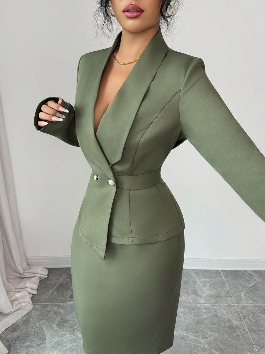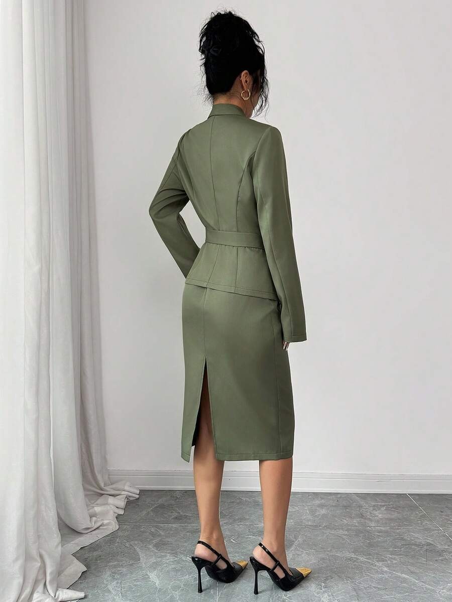 Compleu cu Fusta Midi Amellie Kaki