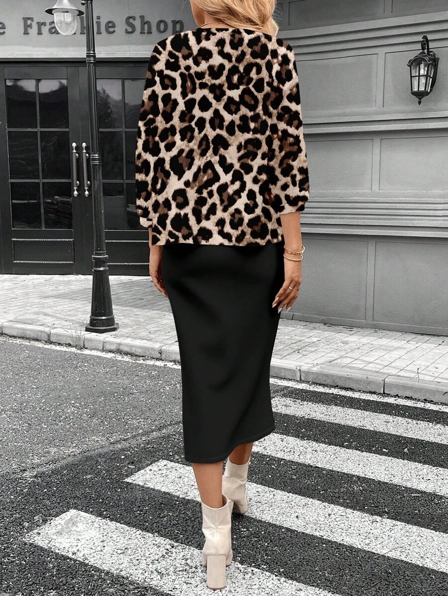 Compleu cu Fusta Midi Folmar cu Bluza Animal Print