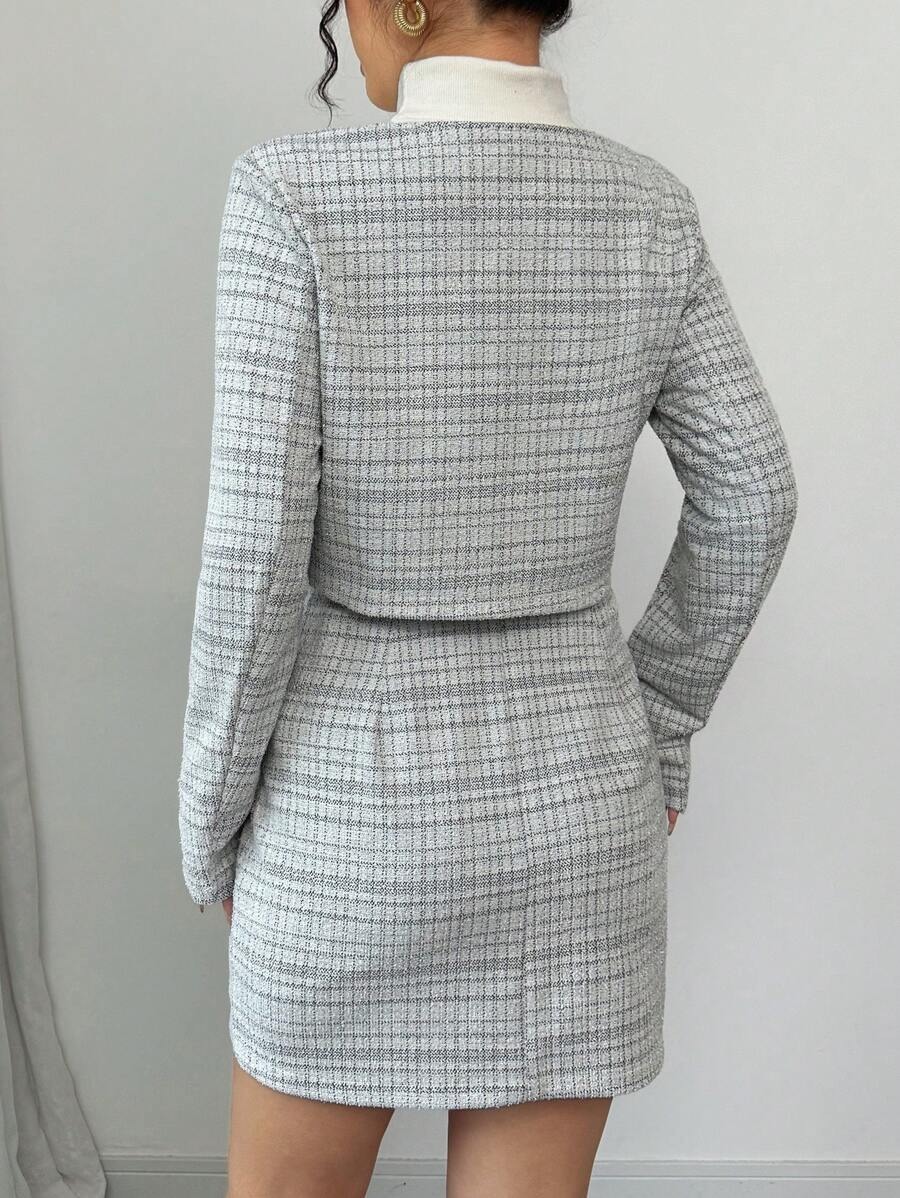 Compleu cu Fusta Scurta Irna Alb cu Print Geometric Gri