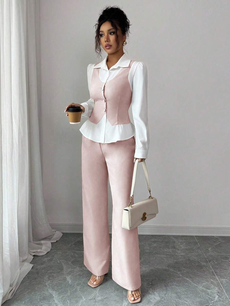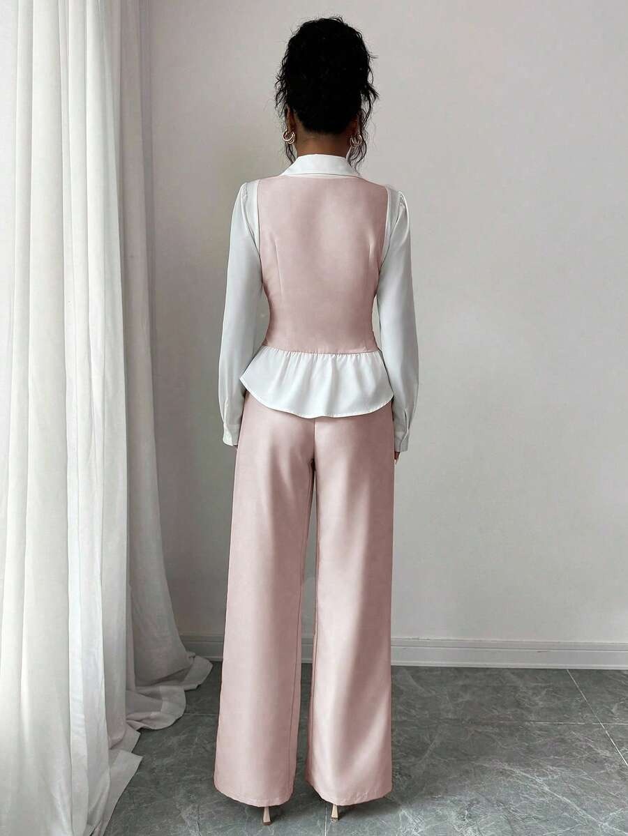 Compleu cu Pantalon Siska Roz cu Maneci Albe