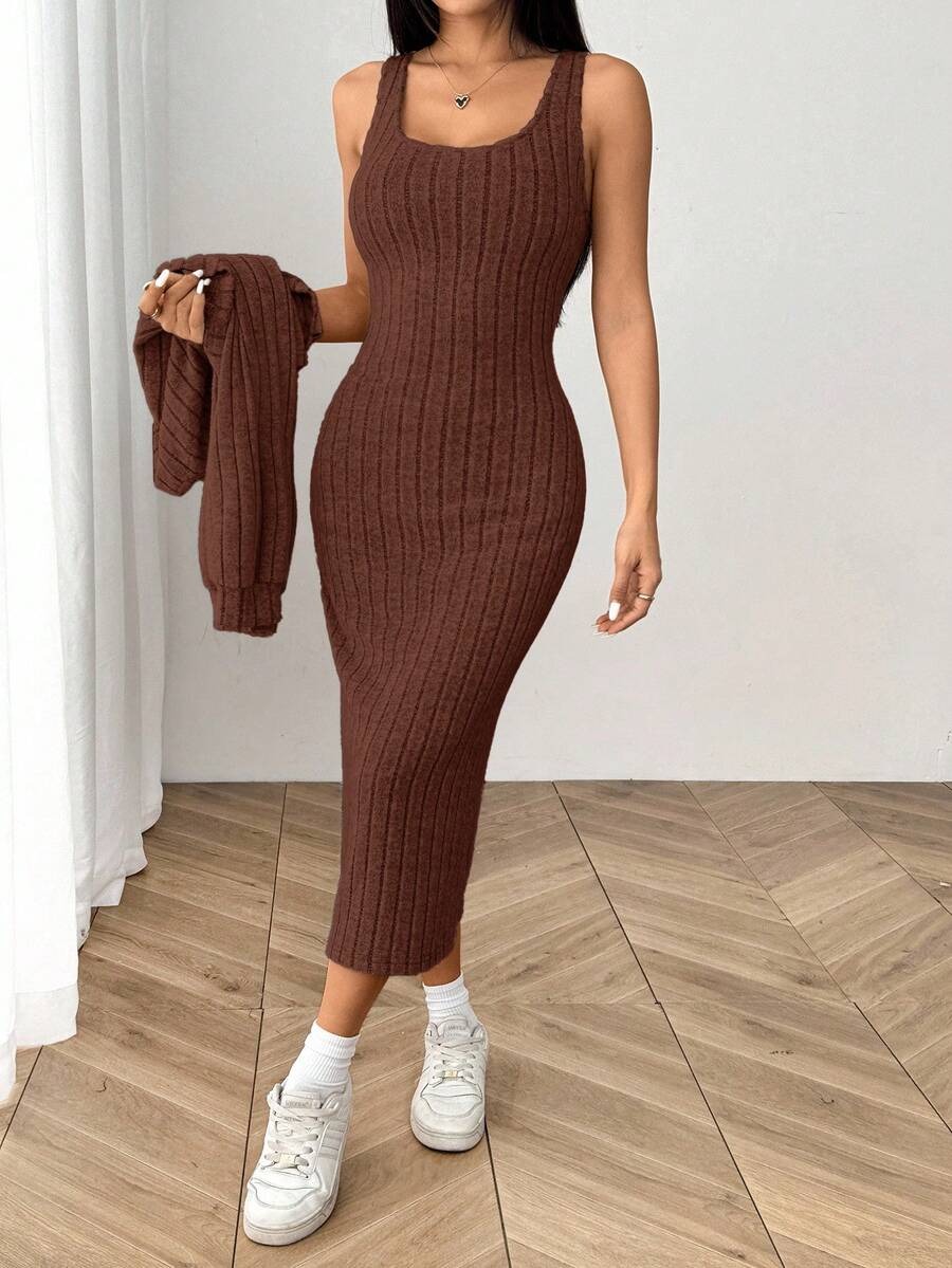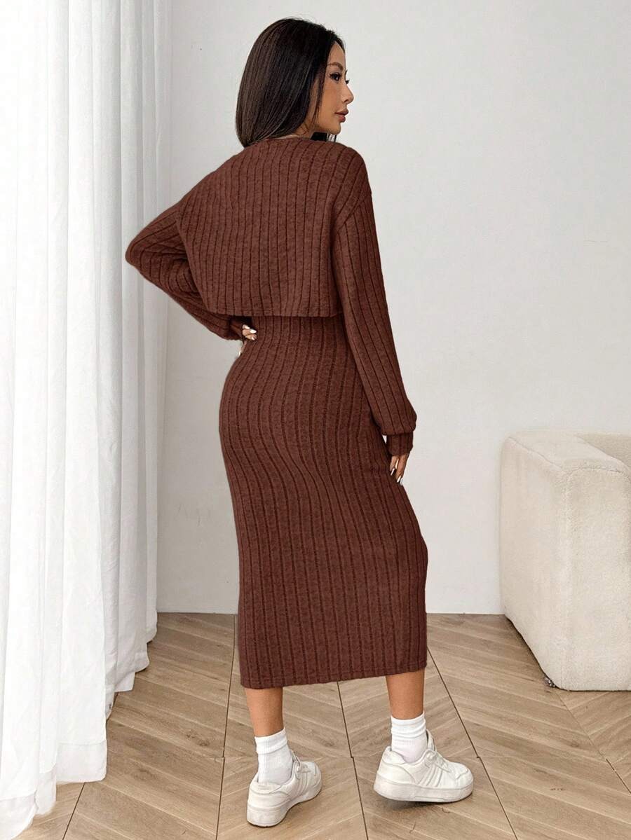 Compleu cu Rochie Midi Jolie Maro