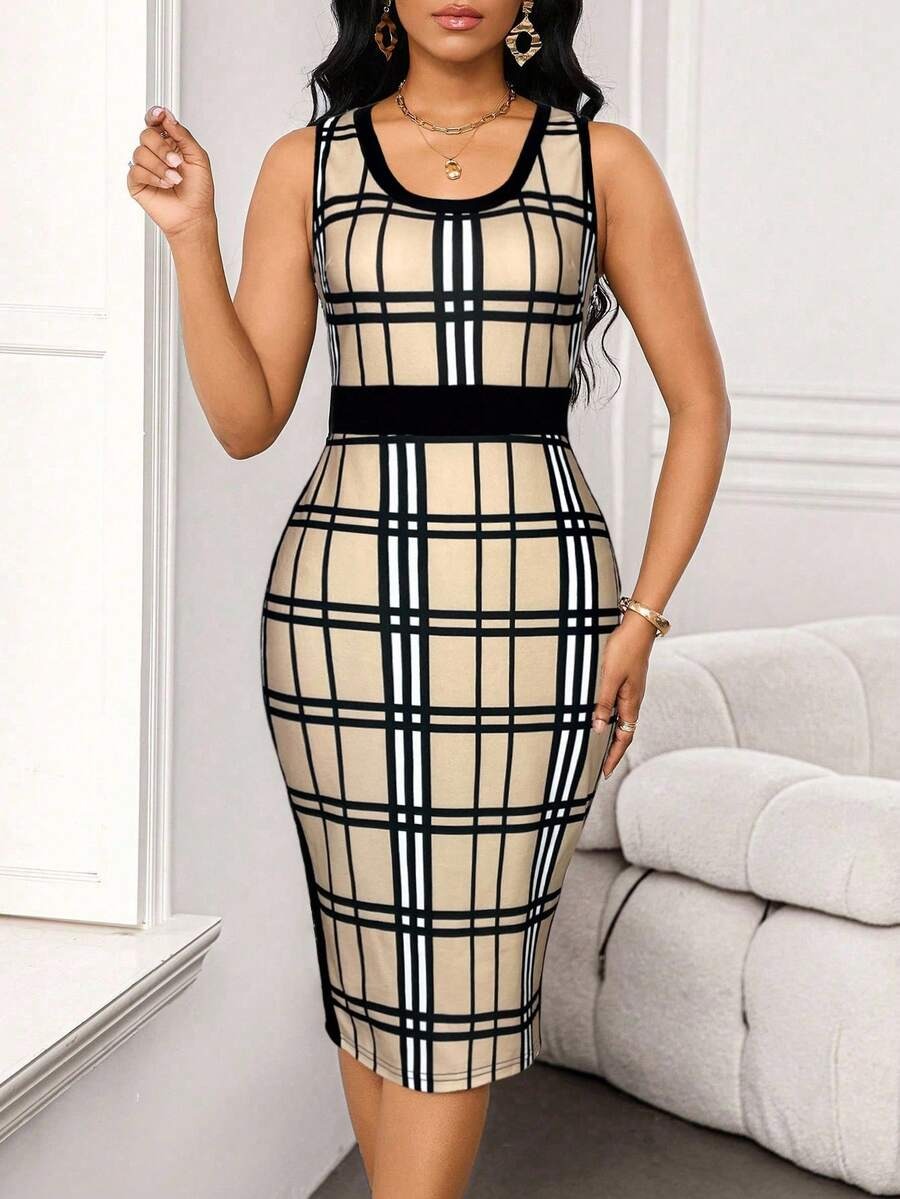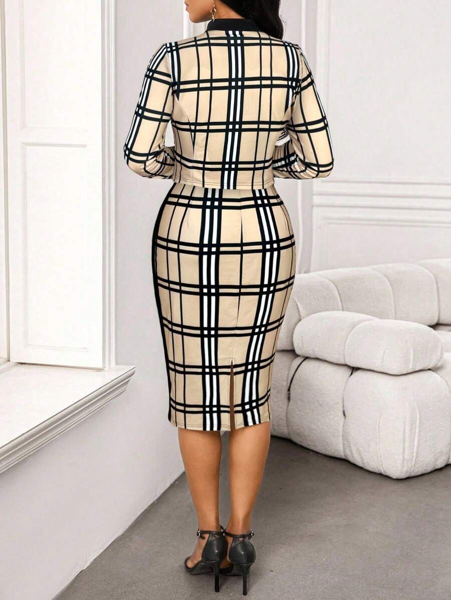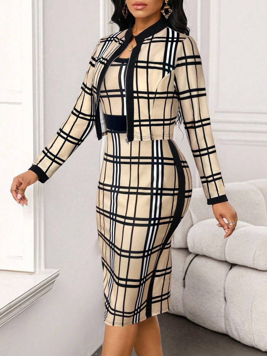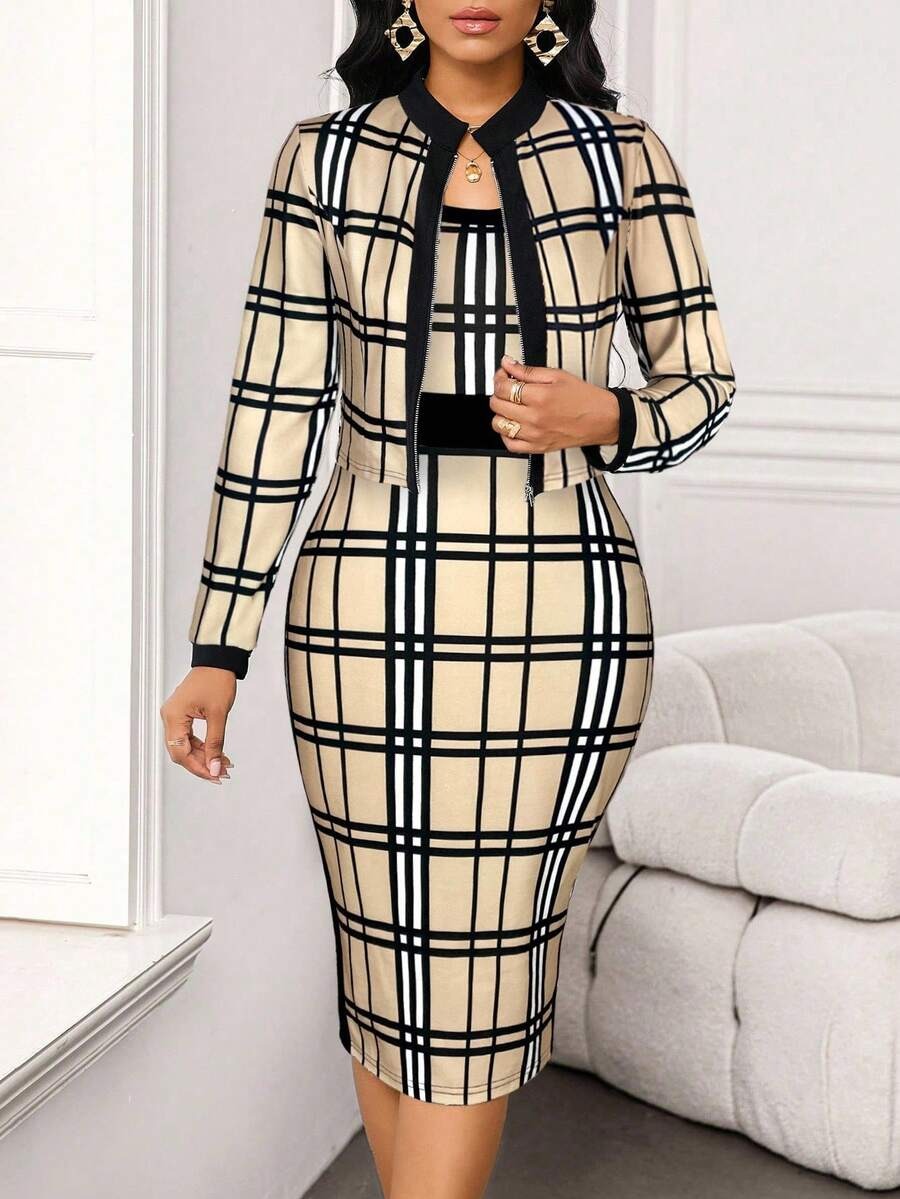 Compleu cu Rochie Midi Varvara Crem cu Print Geometric Negru