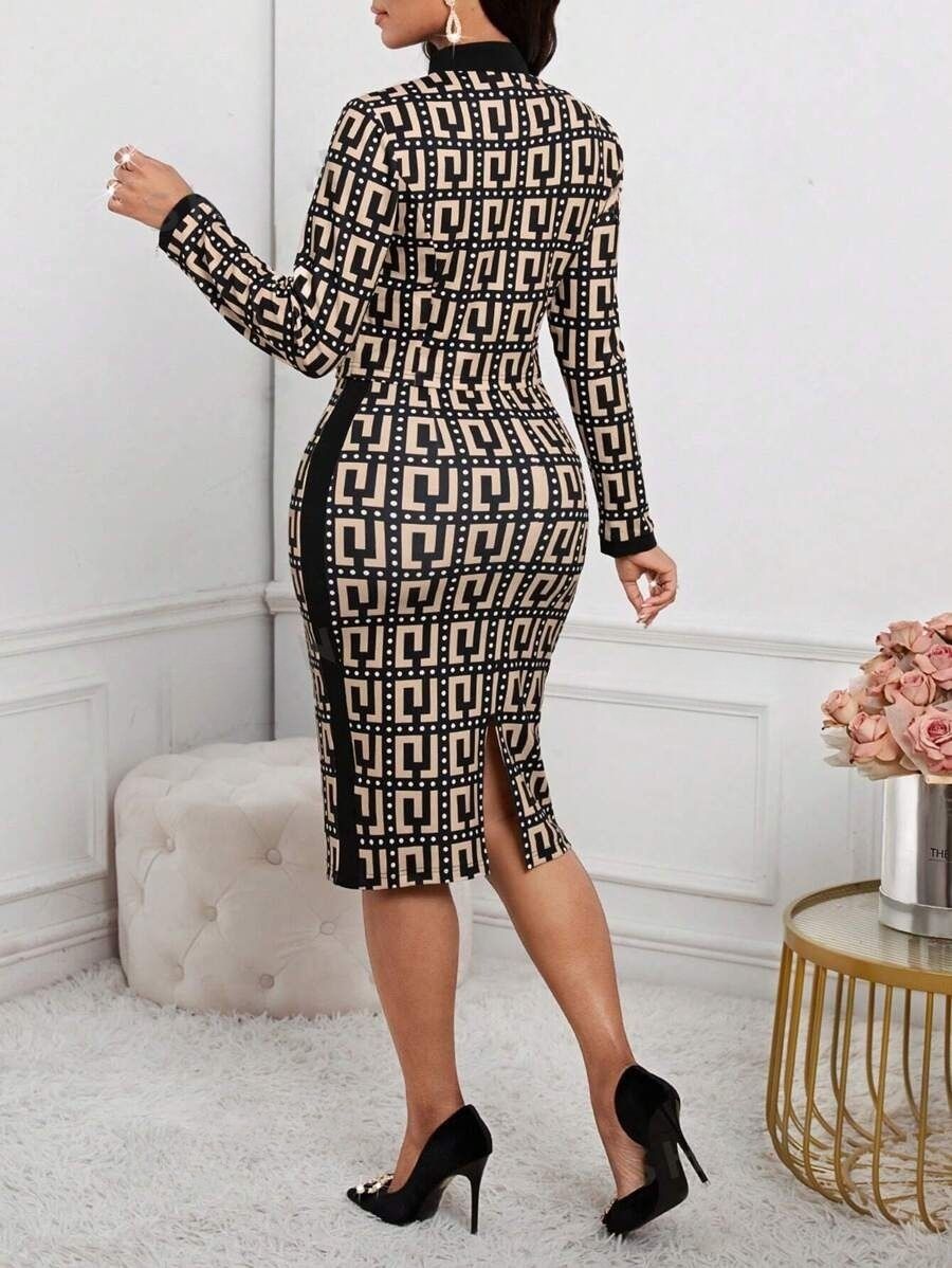 Compleu cu Rochie Midi Vorien Bej cu Print Negru