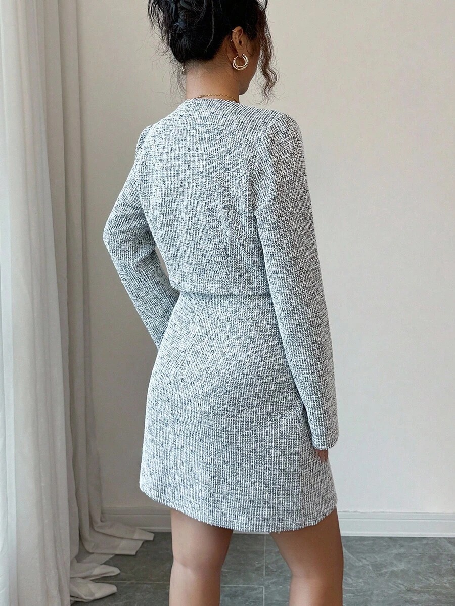 Compleu cu Rochie Scurta Stance Alb cu Print Geometric Negru