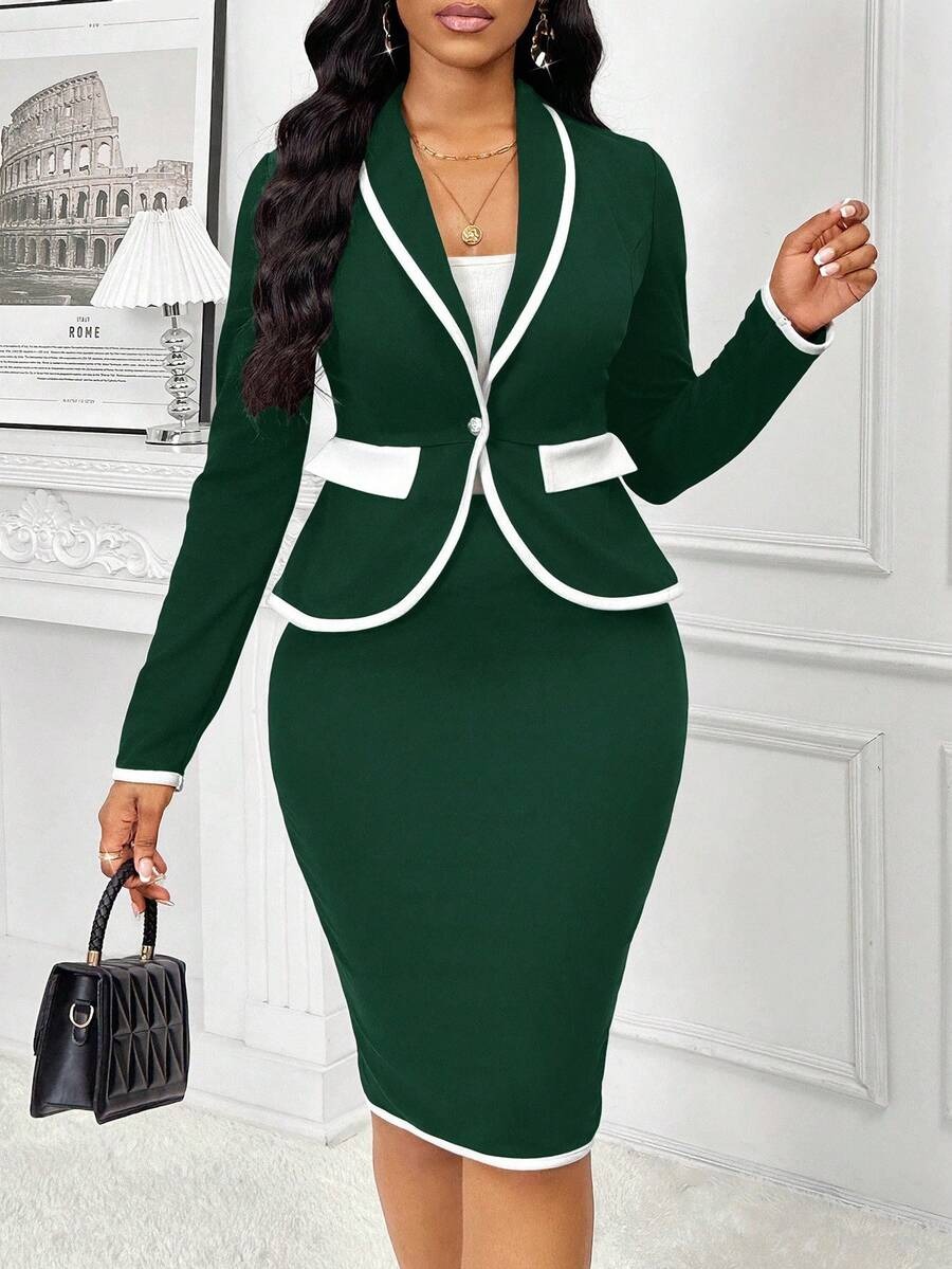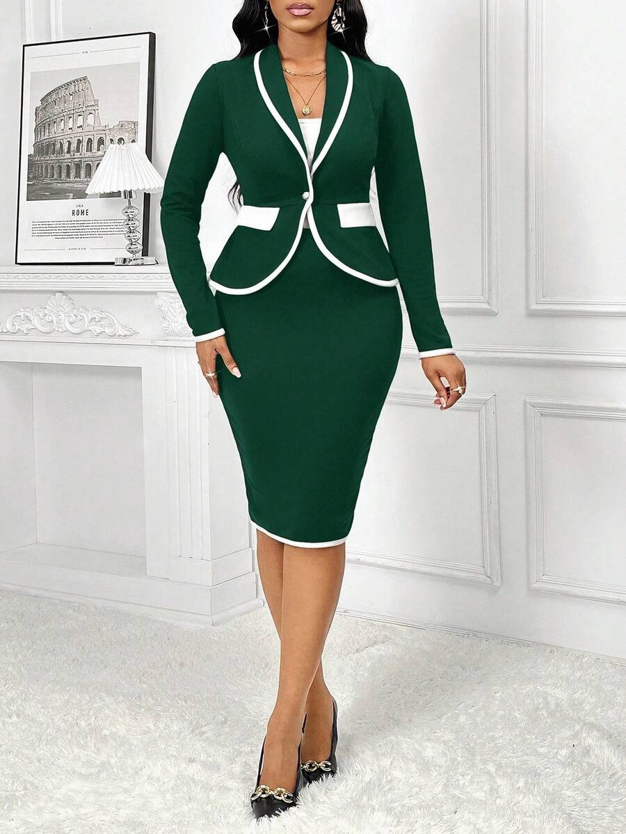 Compleu Katya Verde format din Sacou si Fusta Scurta