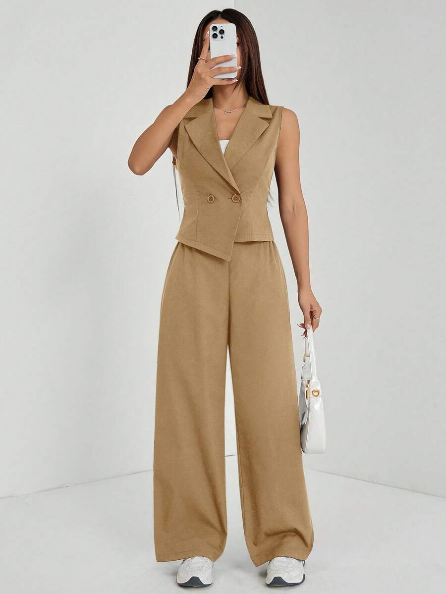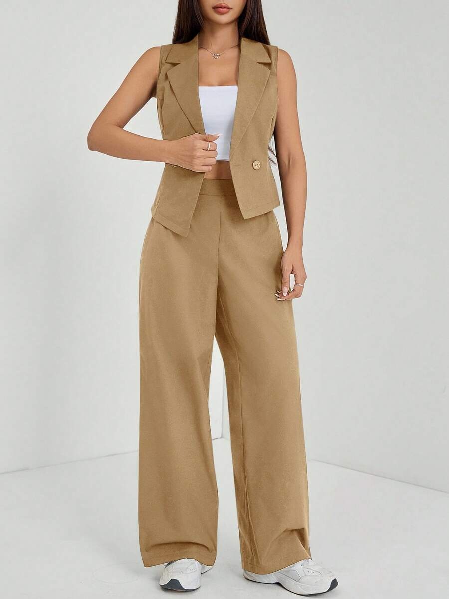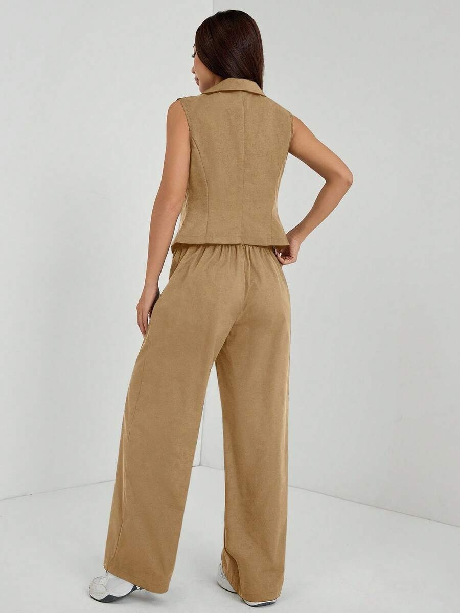 Compleu Lilian Bej format din Vesta si Pantalon