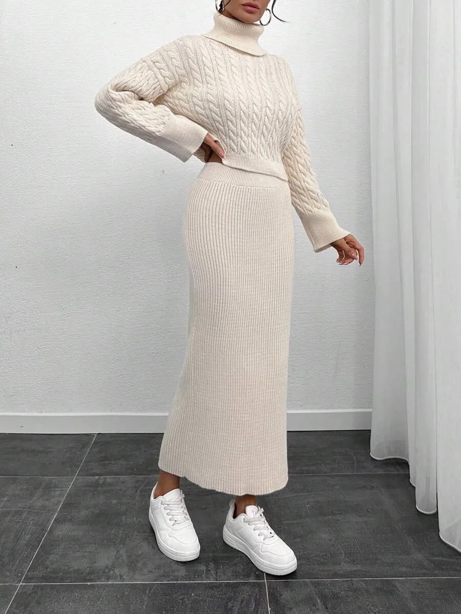 Compleu Tricotat cu Fusta Lunga Corina Bej