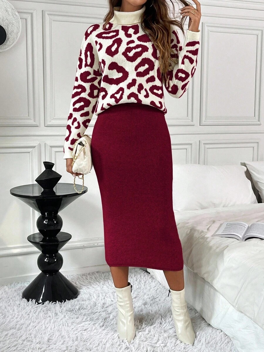 Compleu Tricotat cu Fusta Lunga Glade Grena