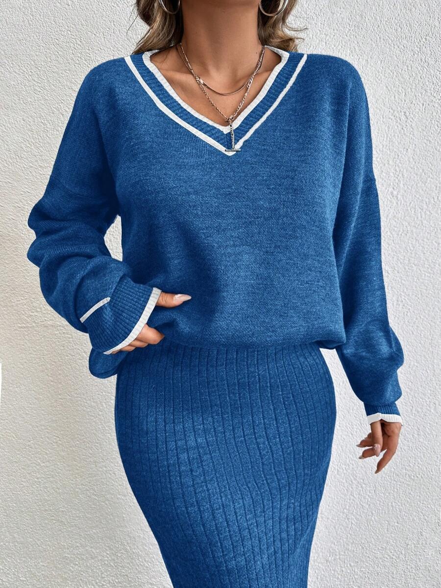 Compleu Tricotat cu Fusta Lunga Nieve Albastru