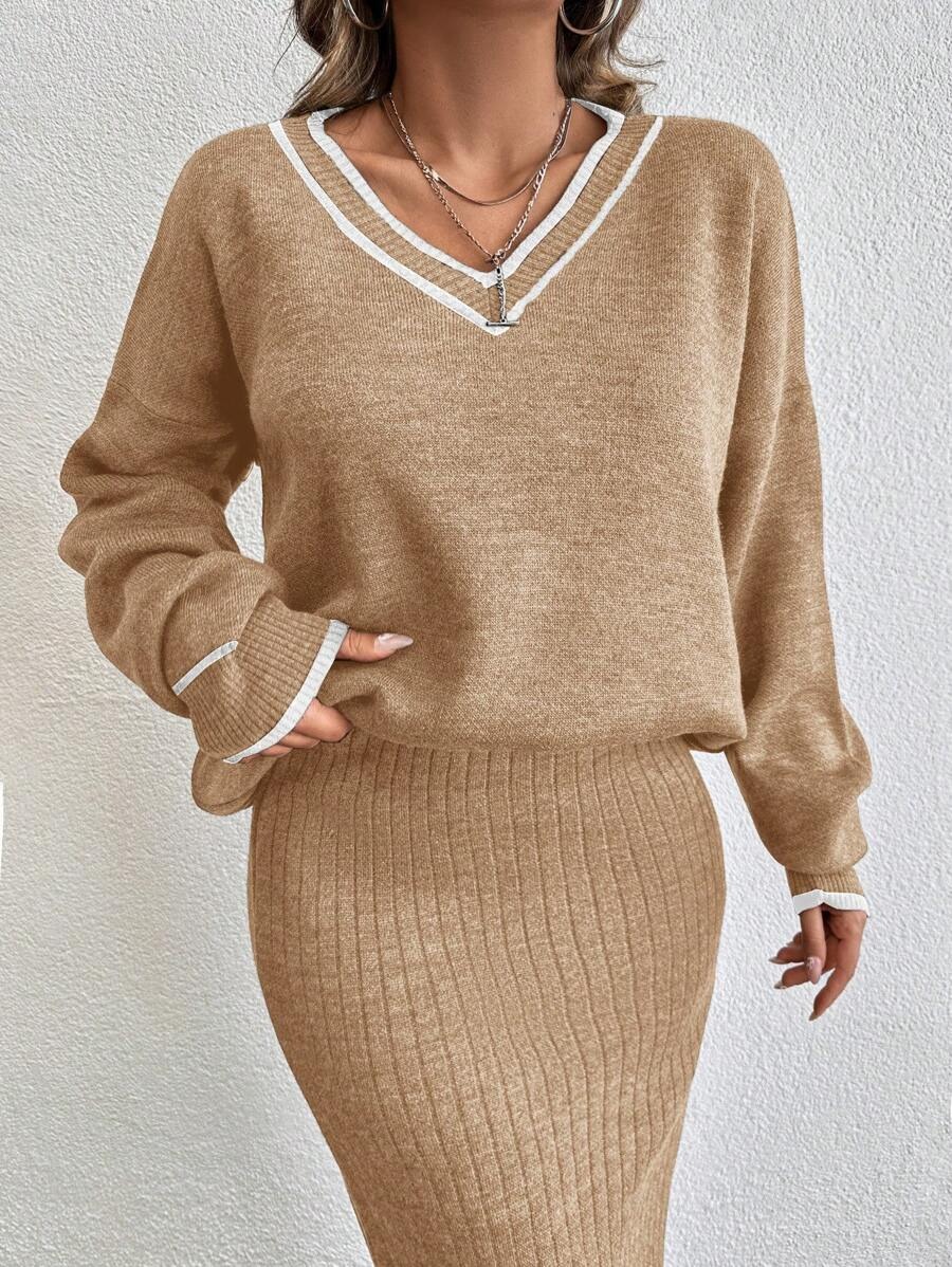 Compleu Tricotat cu Fusta Lunga Nieve Bej