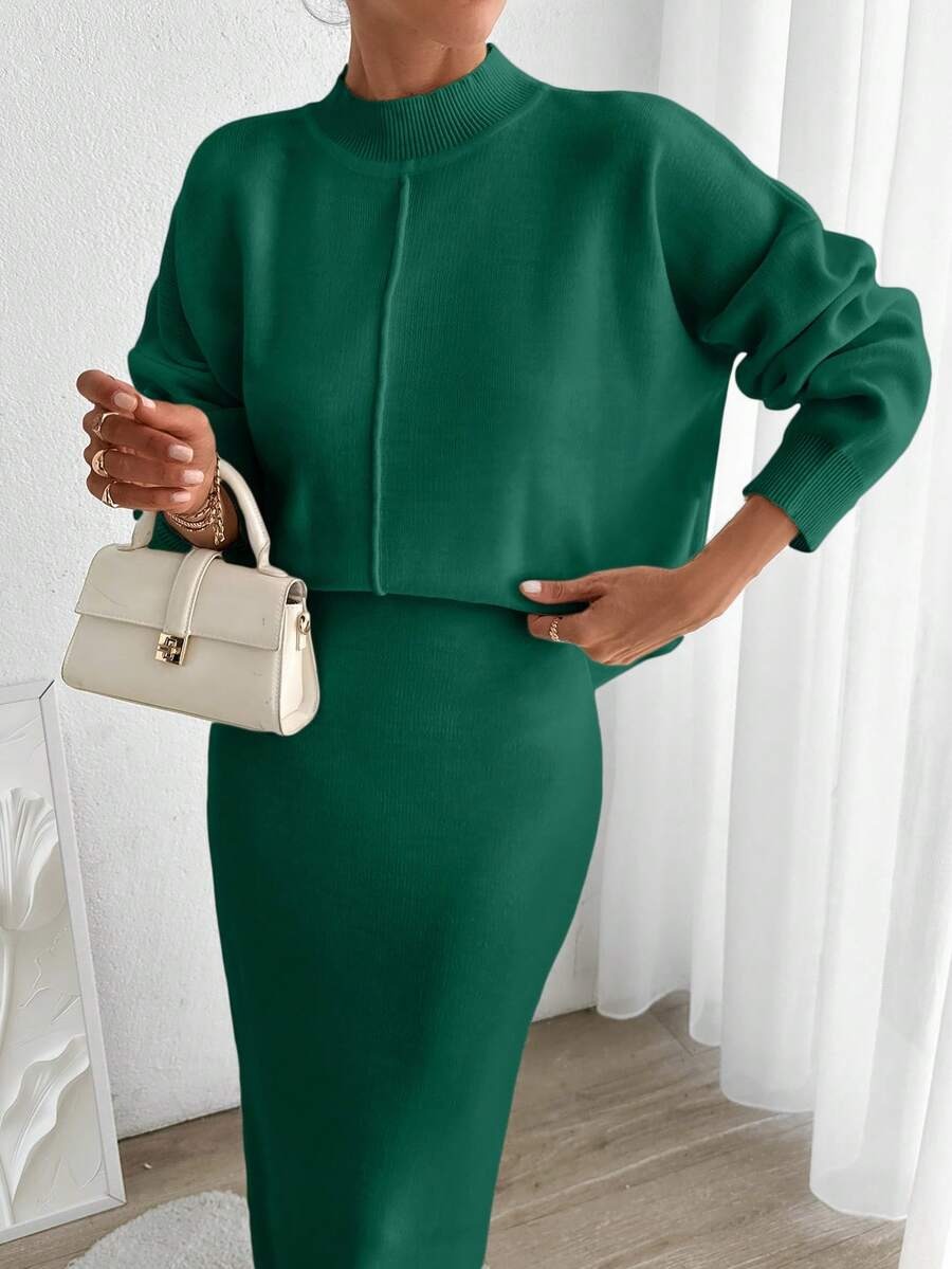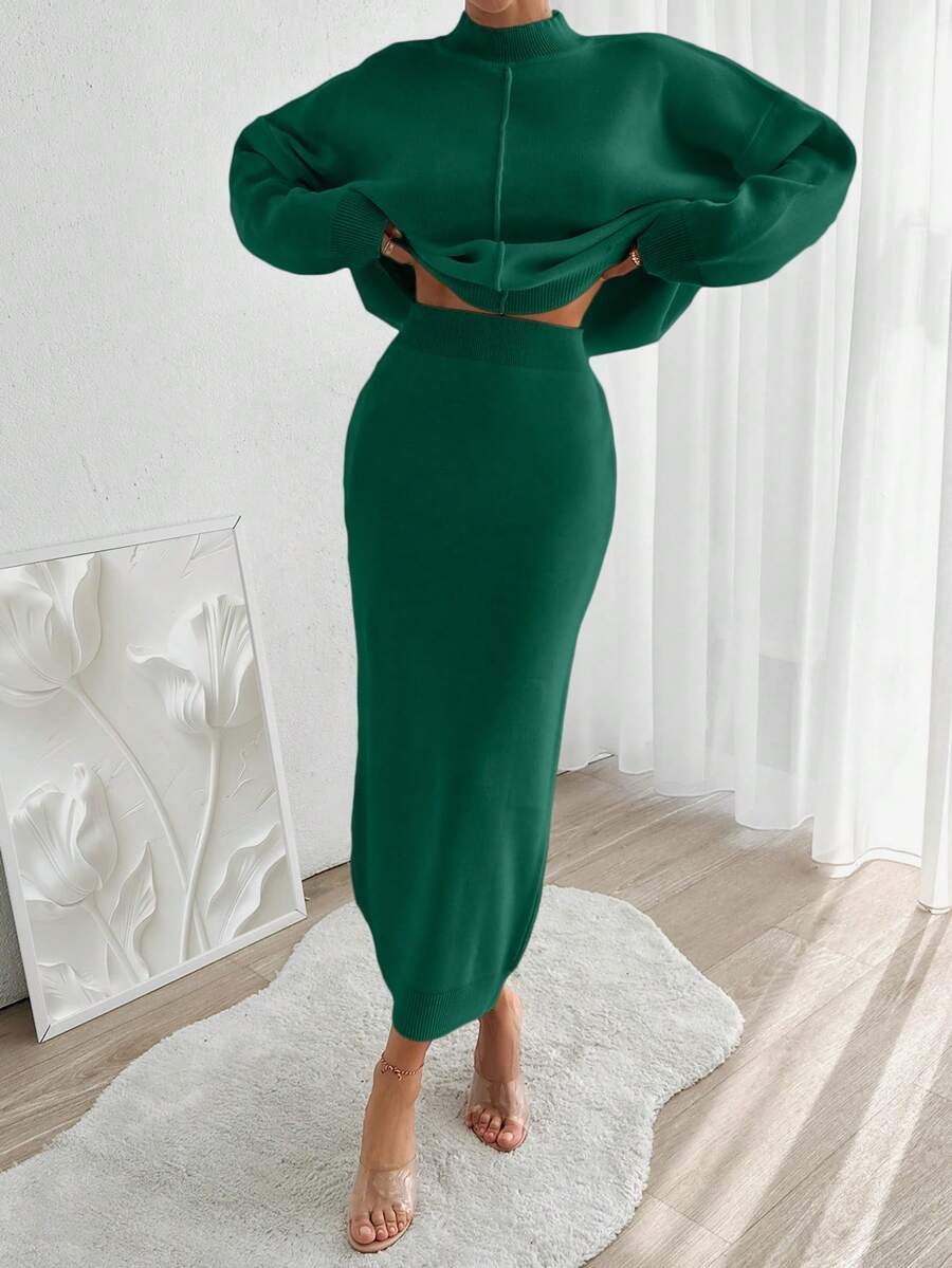 Compleu Tricotat cu Fusta Lunga Viona Verde