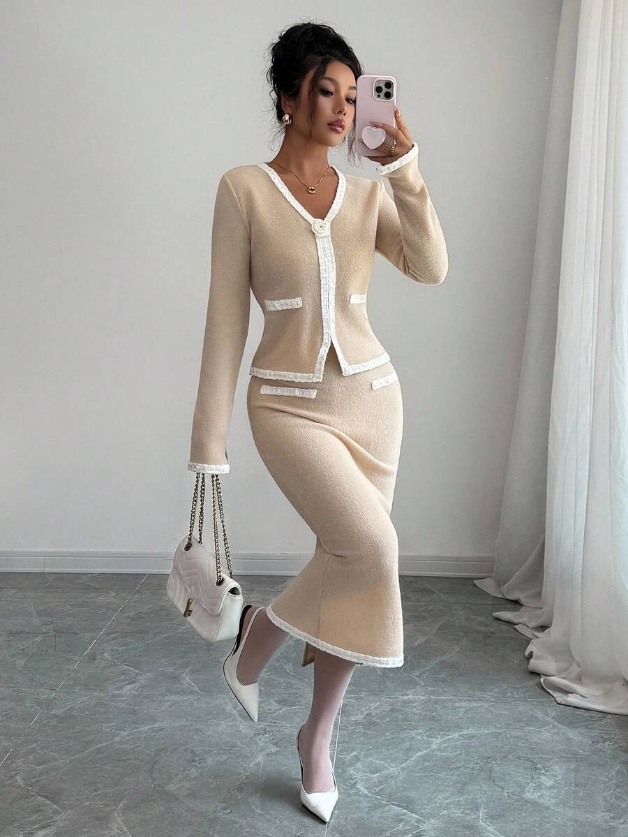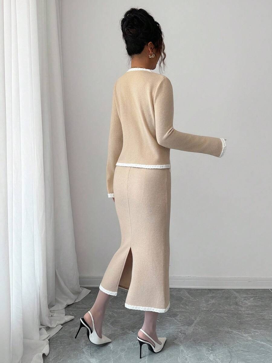 Compleu Tricotat cu Fusta Midi Irina Crem