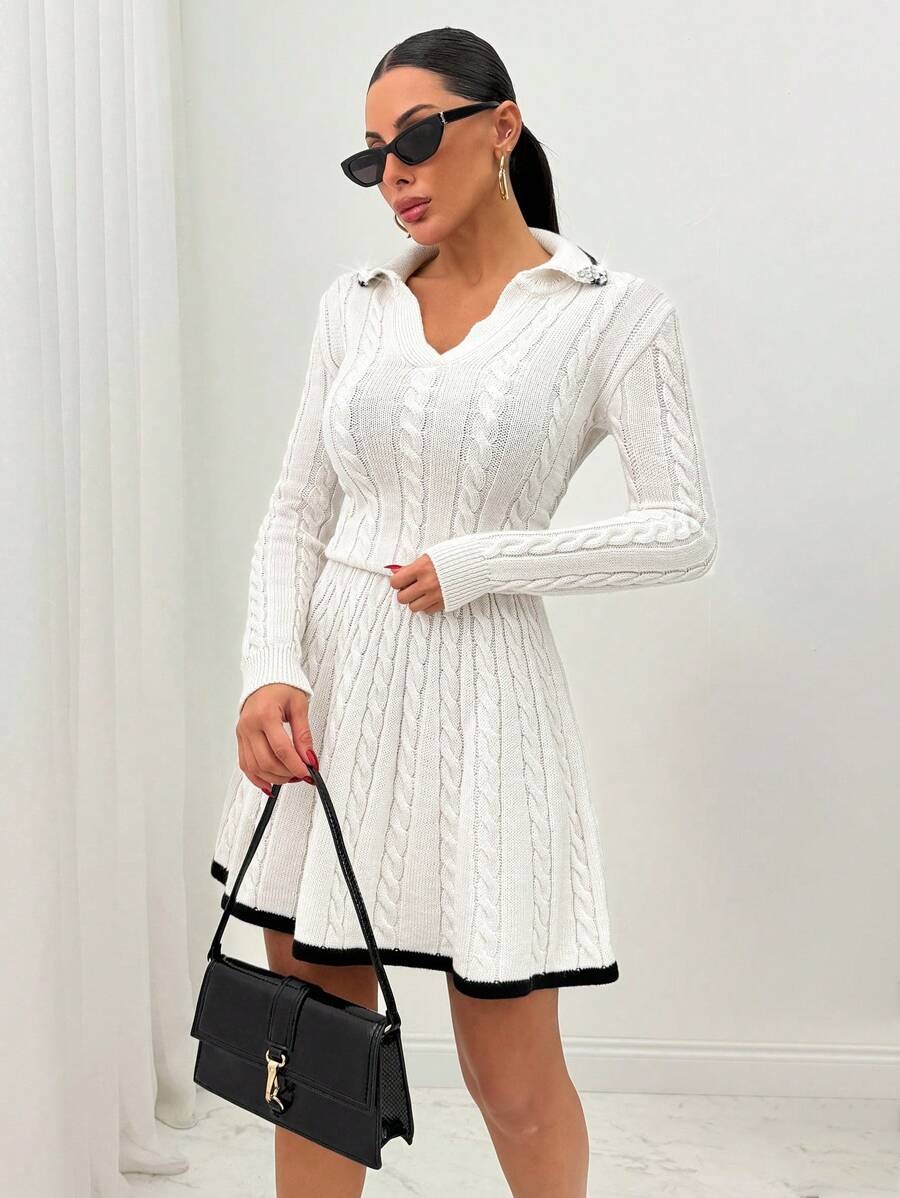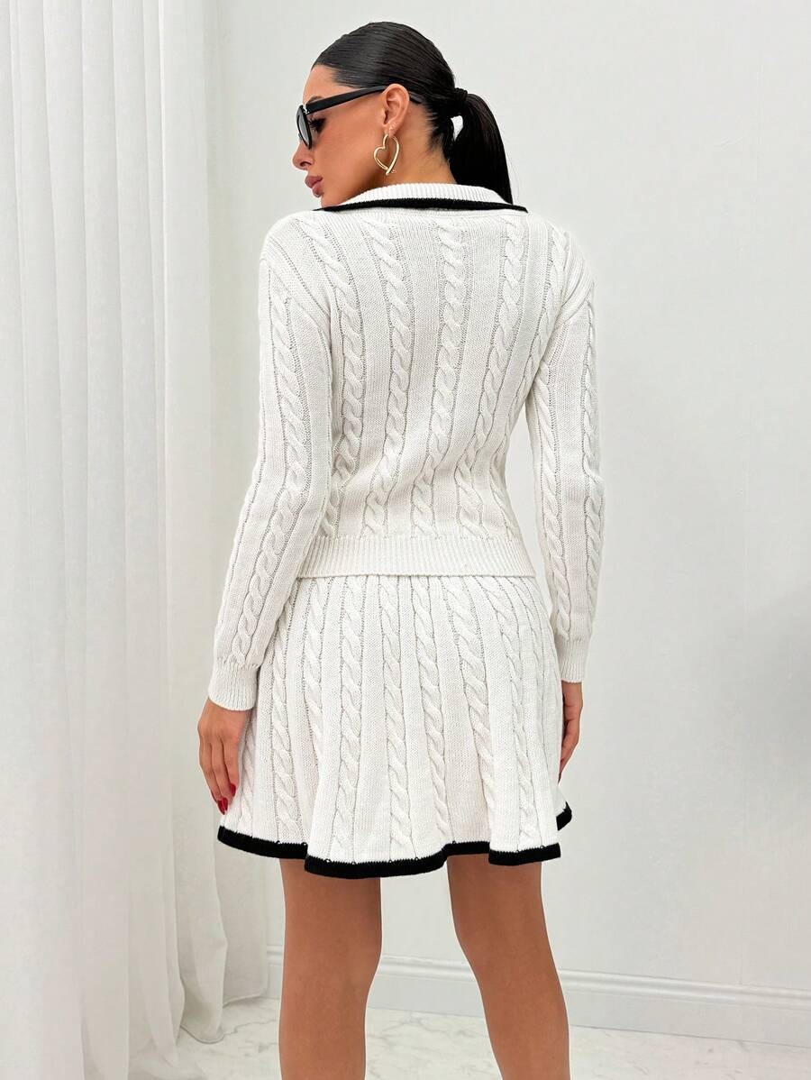 Compleu Tricotat cu Fusta Scurta Axelia Alb