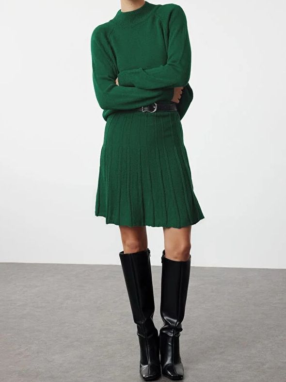 Compleu Tricotat cu Fusta Scurta Jackie Verde