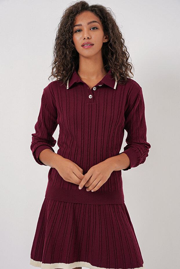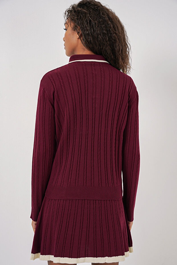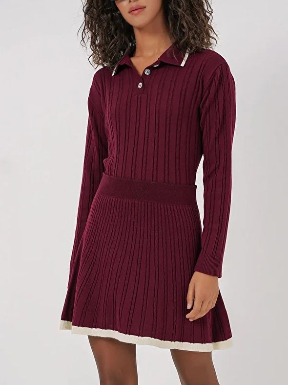 Compleu Tricotat cu Fusta Scurta Shannon Grena